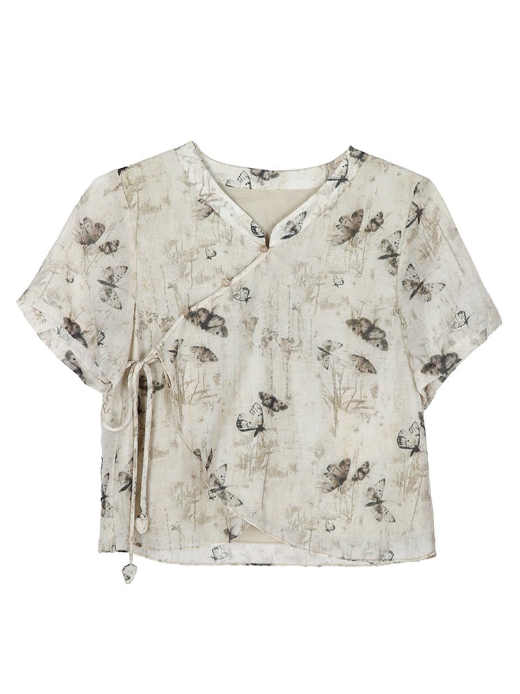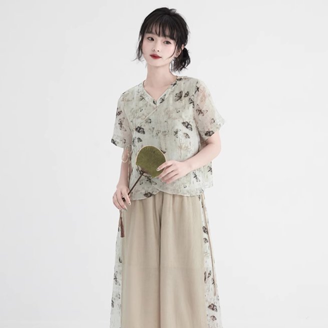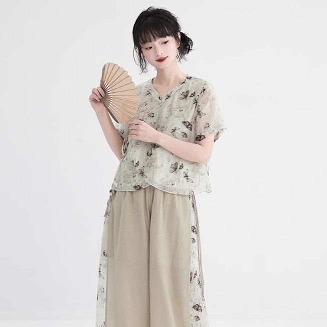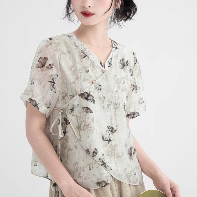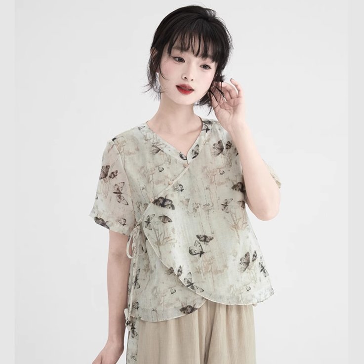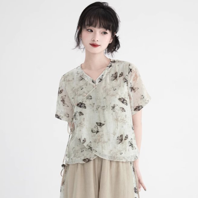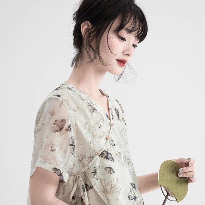 - M: Bust 97cm, Sleeve opening 39.5cm, Sleeve length 22cm, Shoulder width 40cm, Length 52.5cm