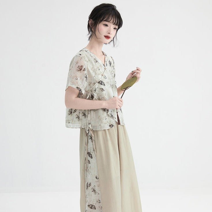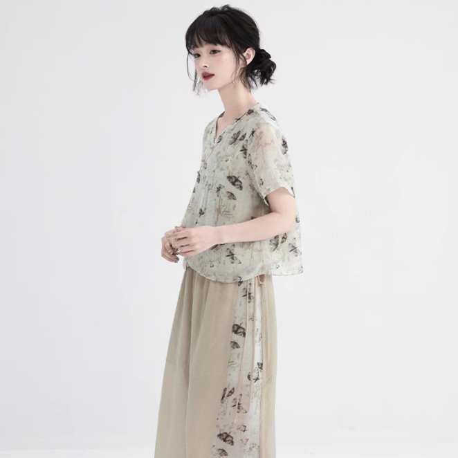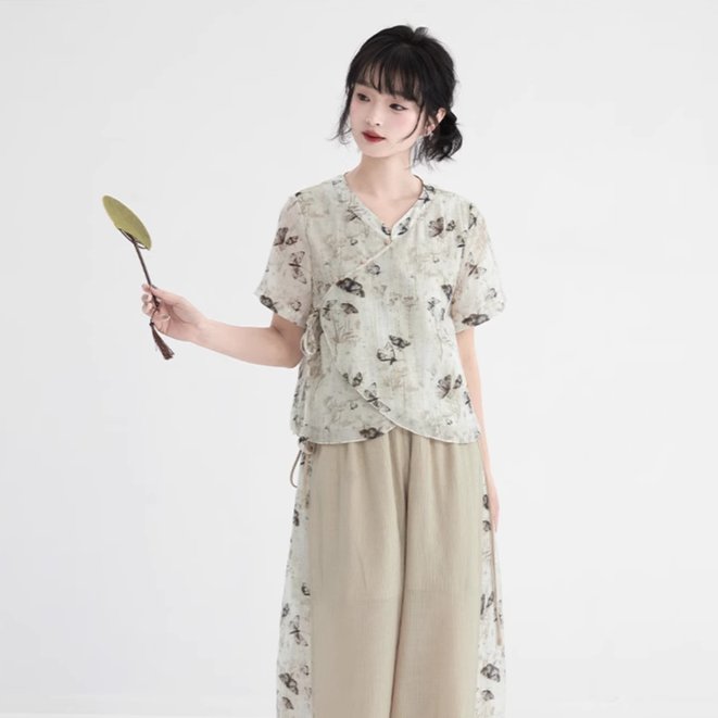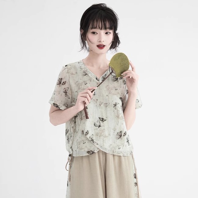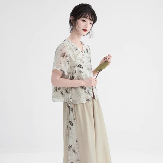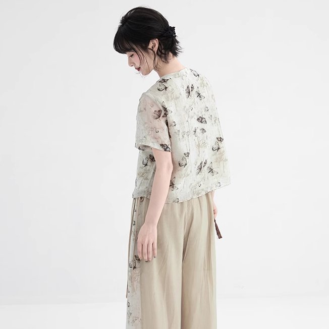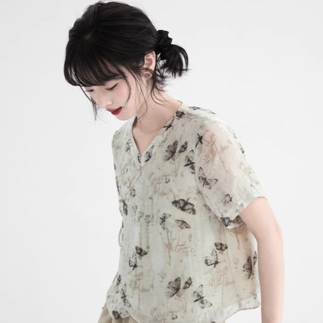 - S: Bust 93cm, Cuff 38cm, Sleeve Length 21cm, Shoulder Width 39cm, Length 51.5cm
