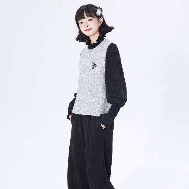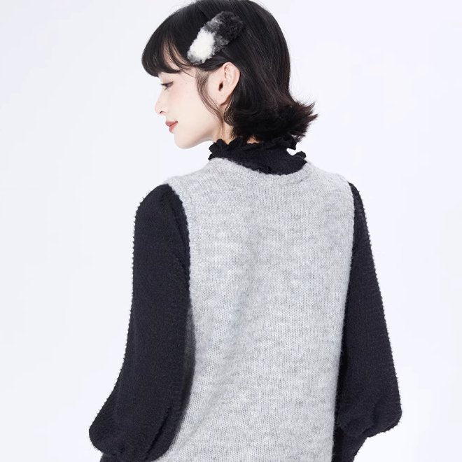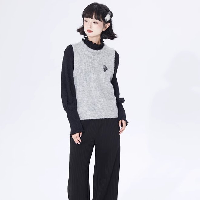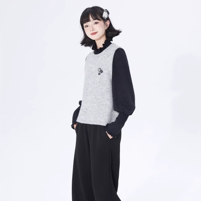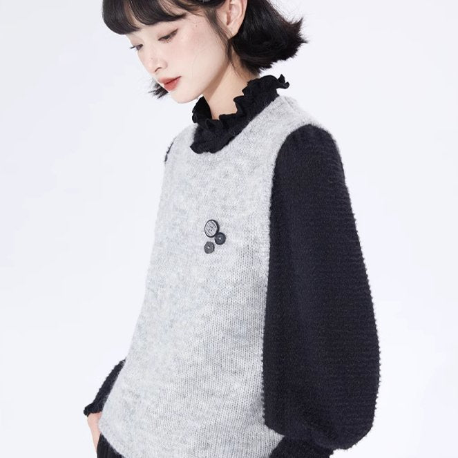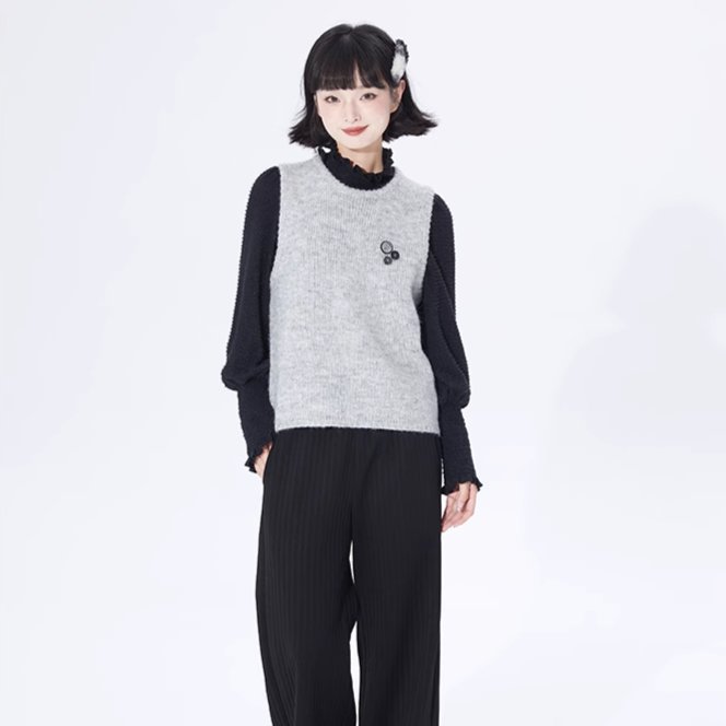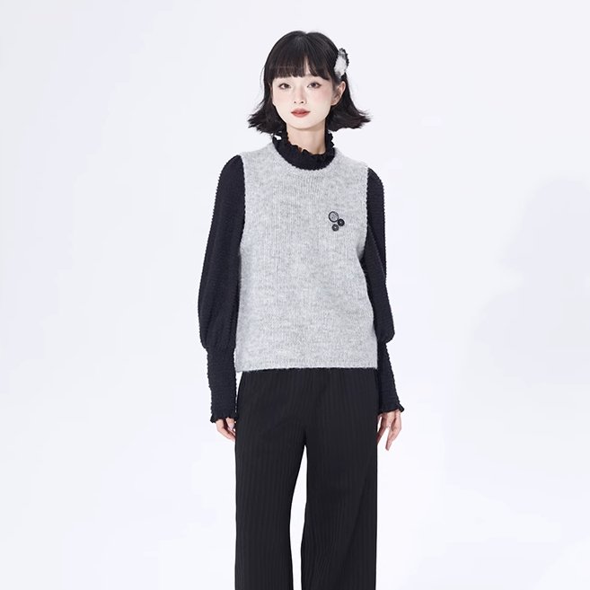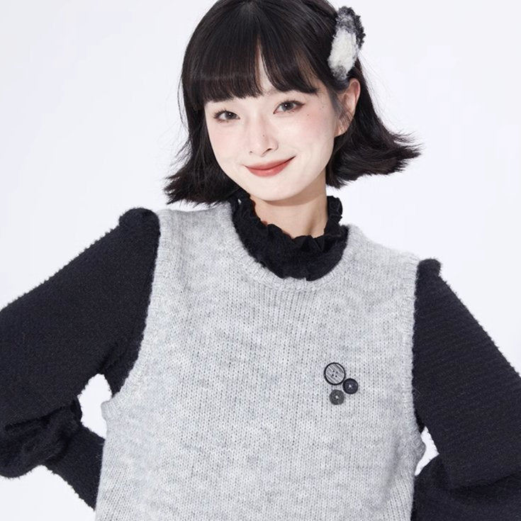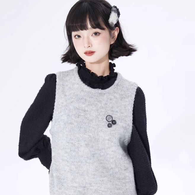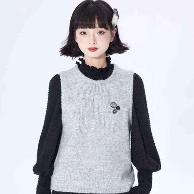 Layer Button Round Neck Pullover Sweater Vest