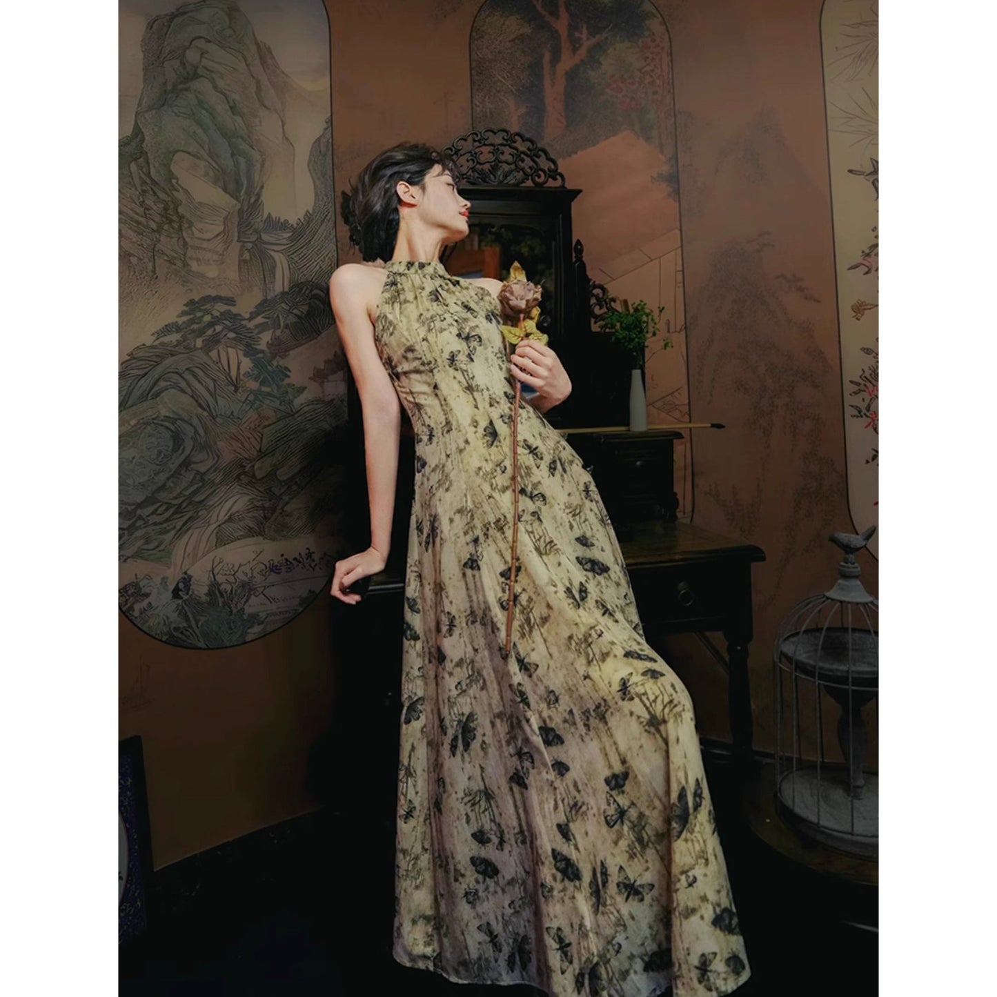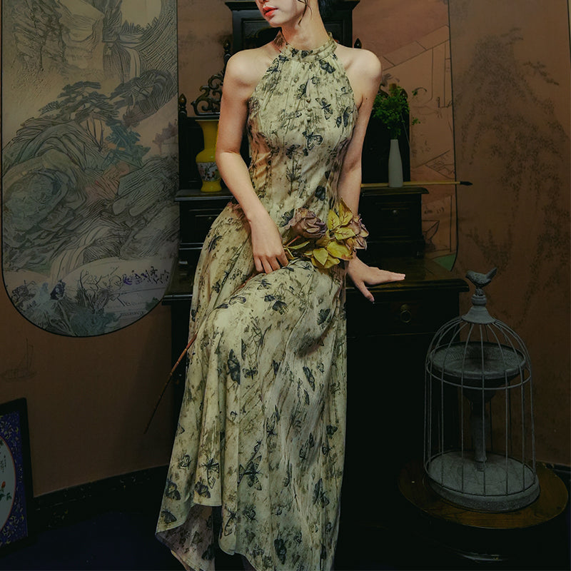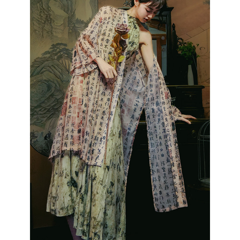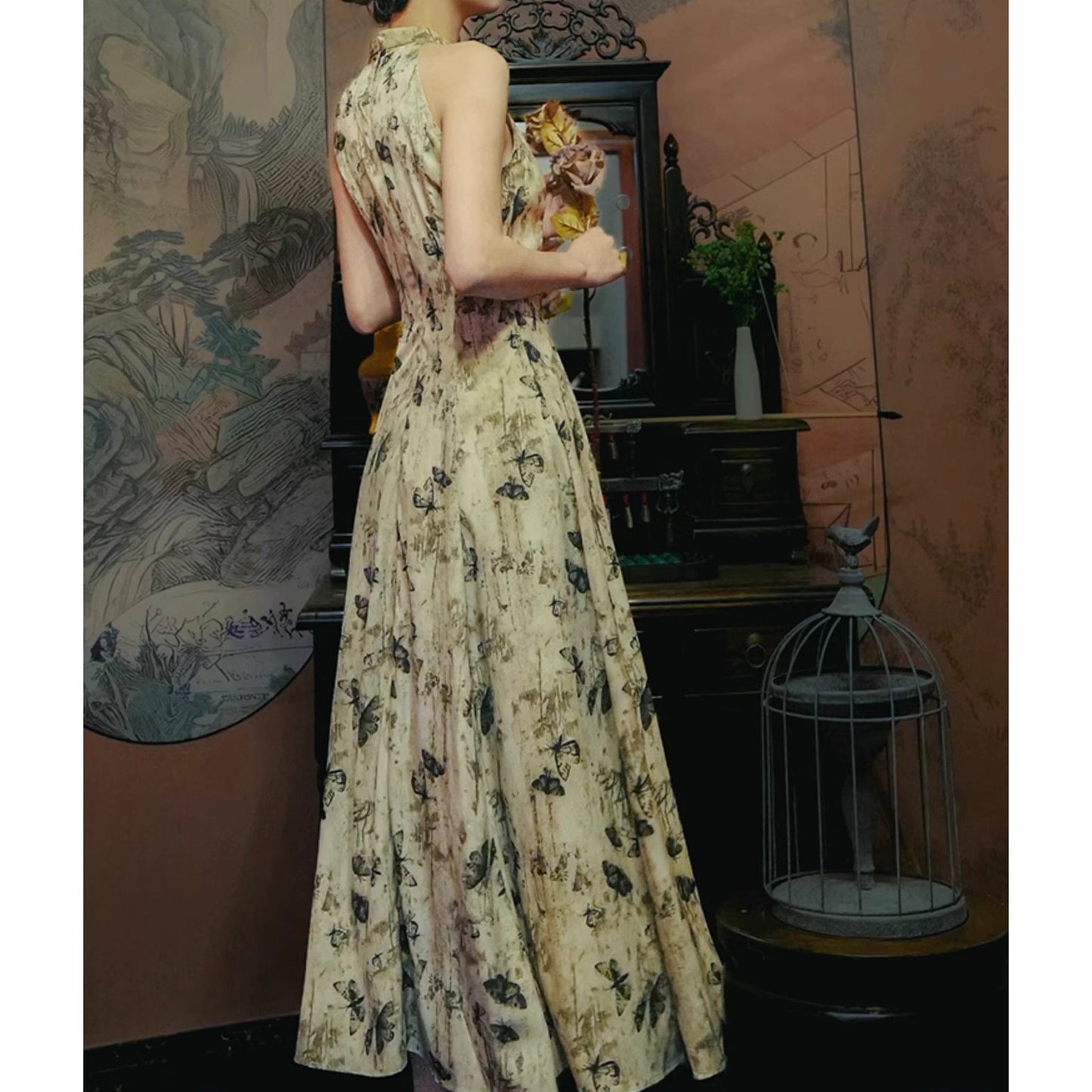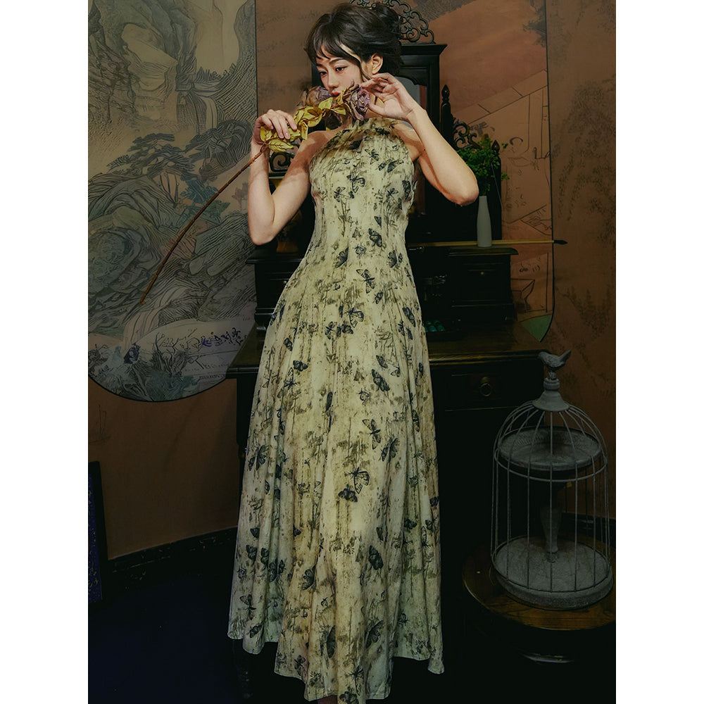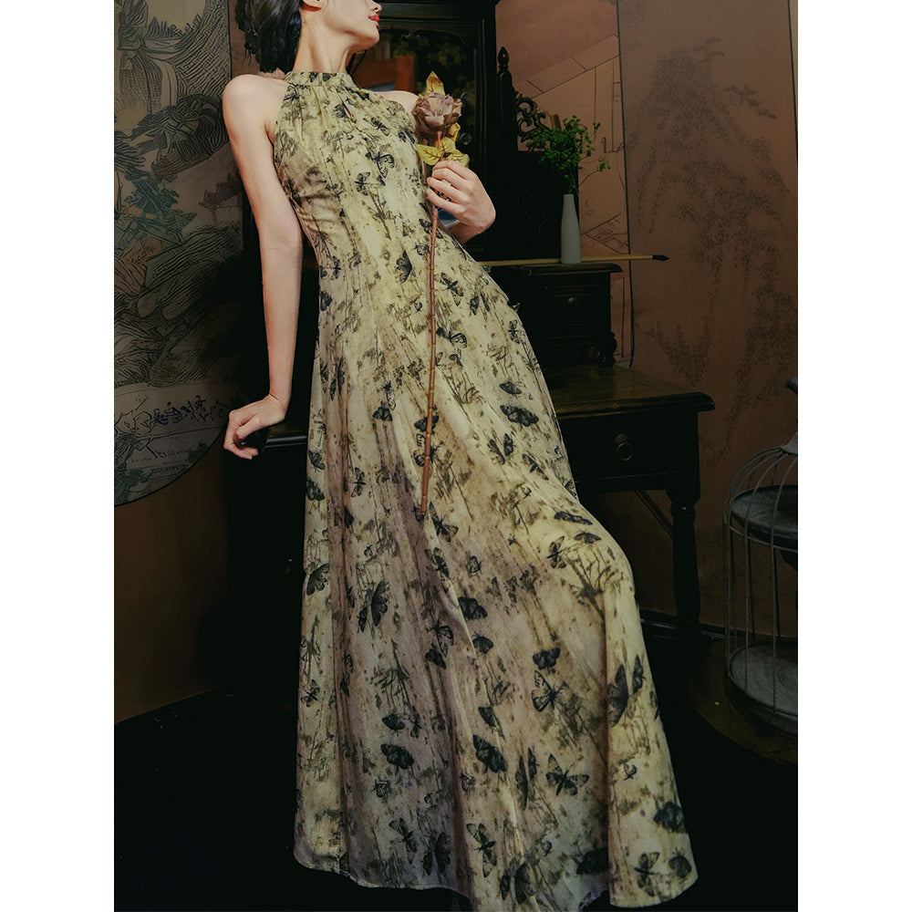 Butterfly ink painting long dress