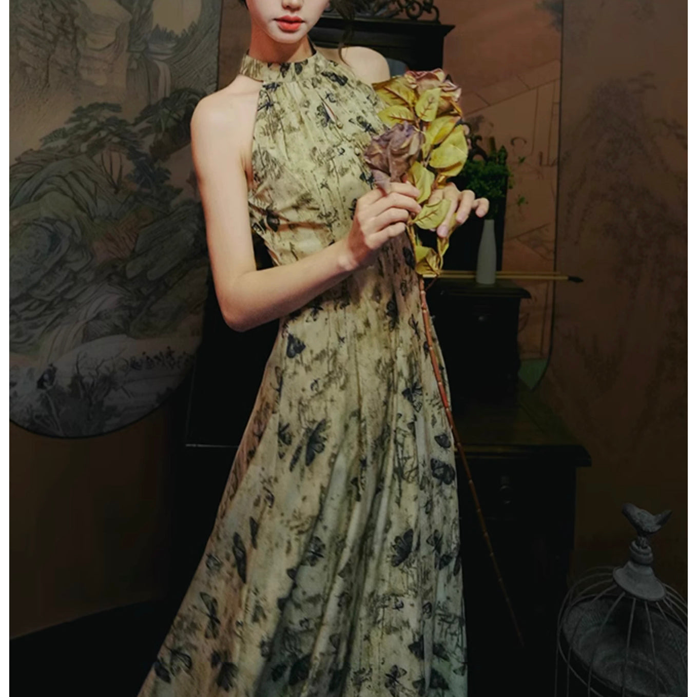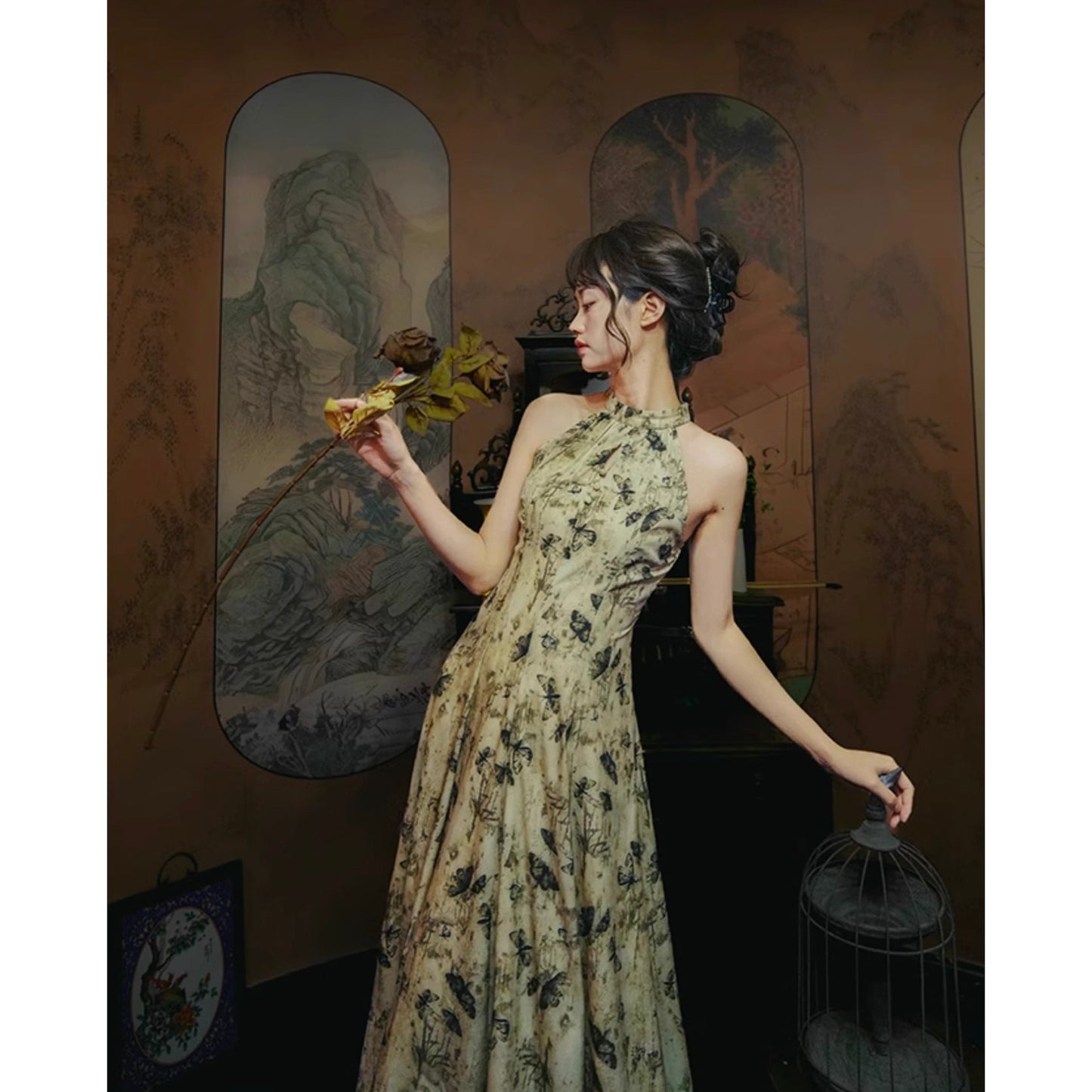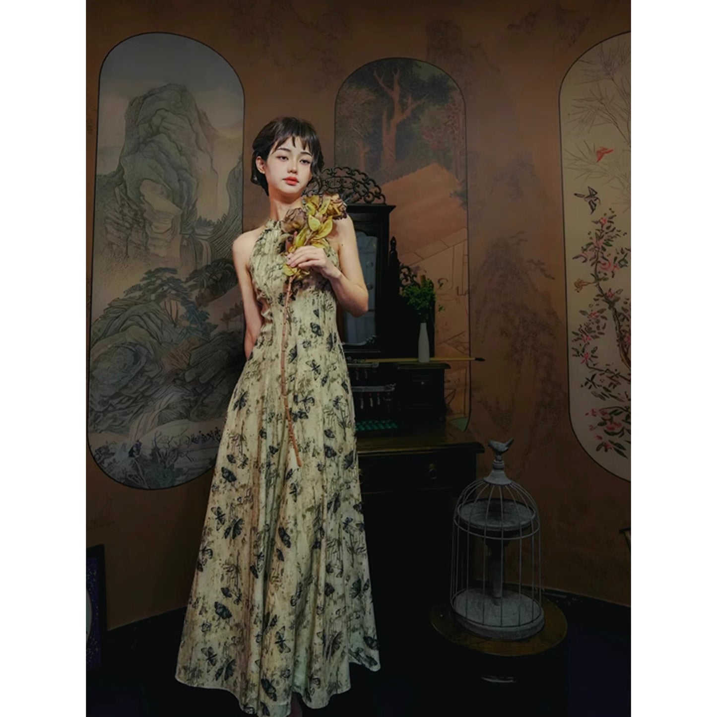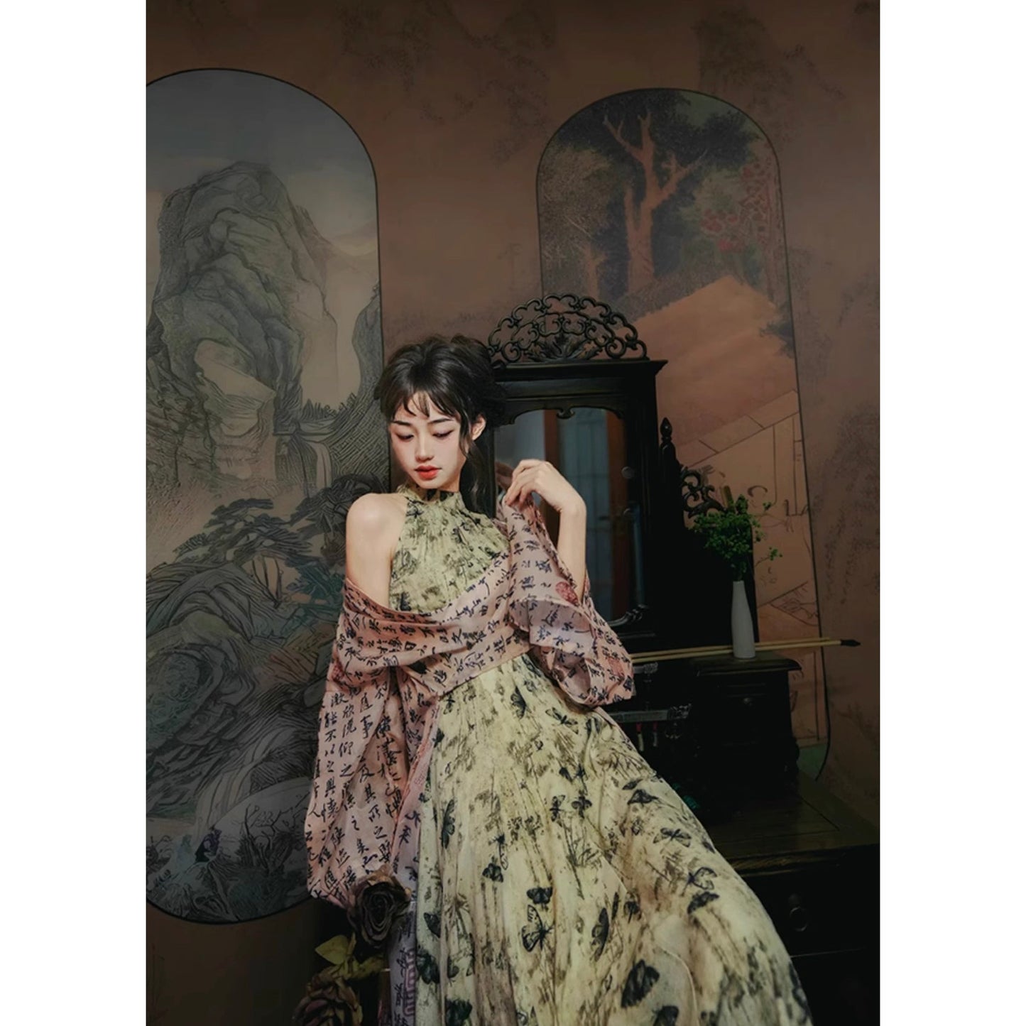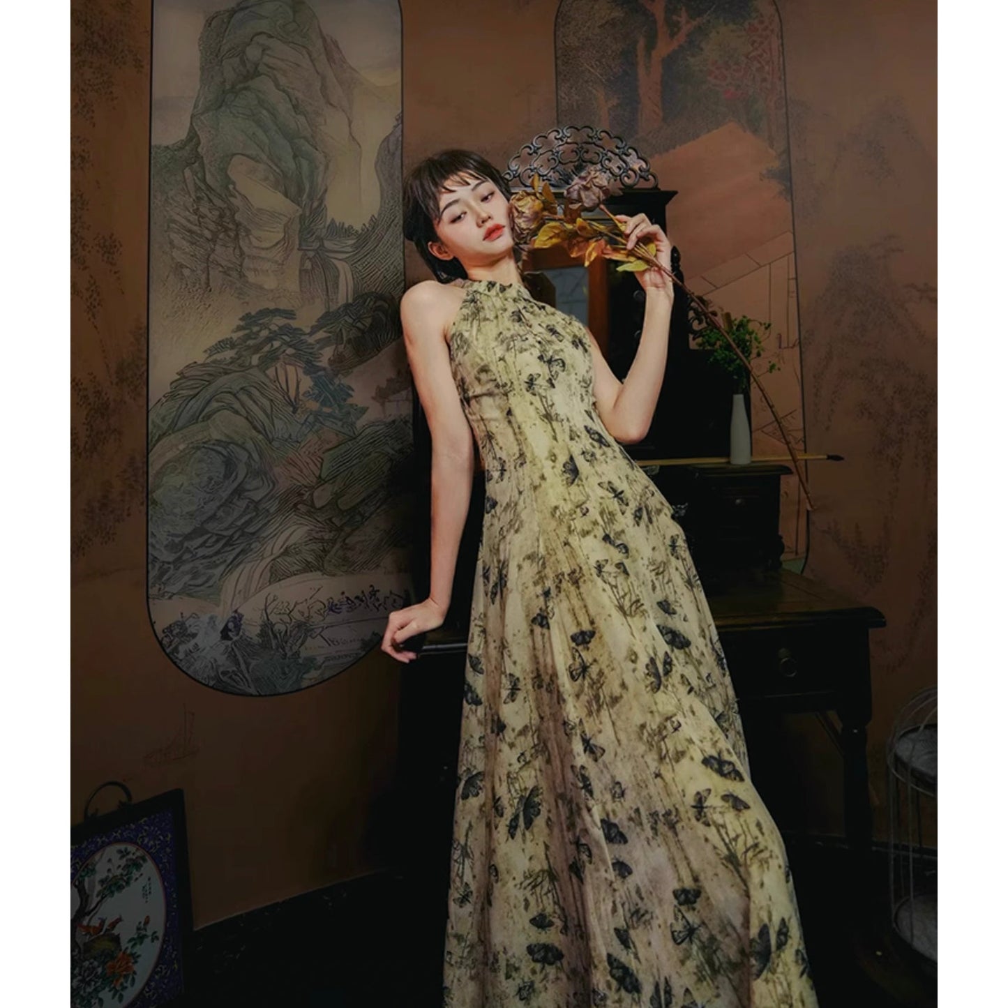 Butterfly ink painting long dress