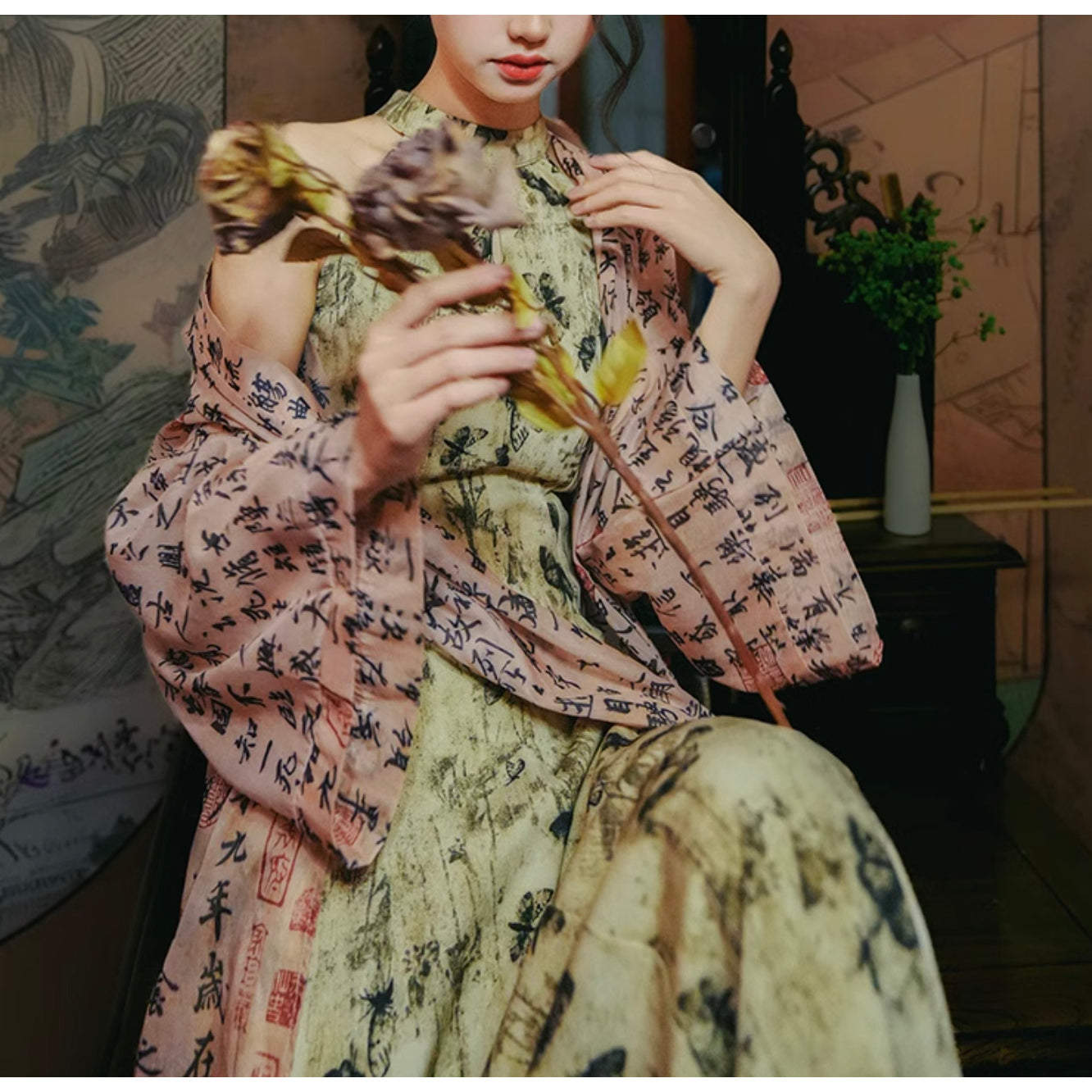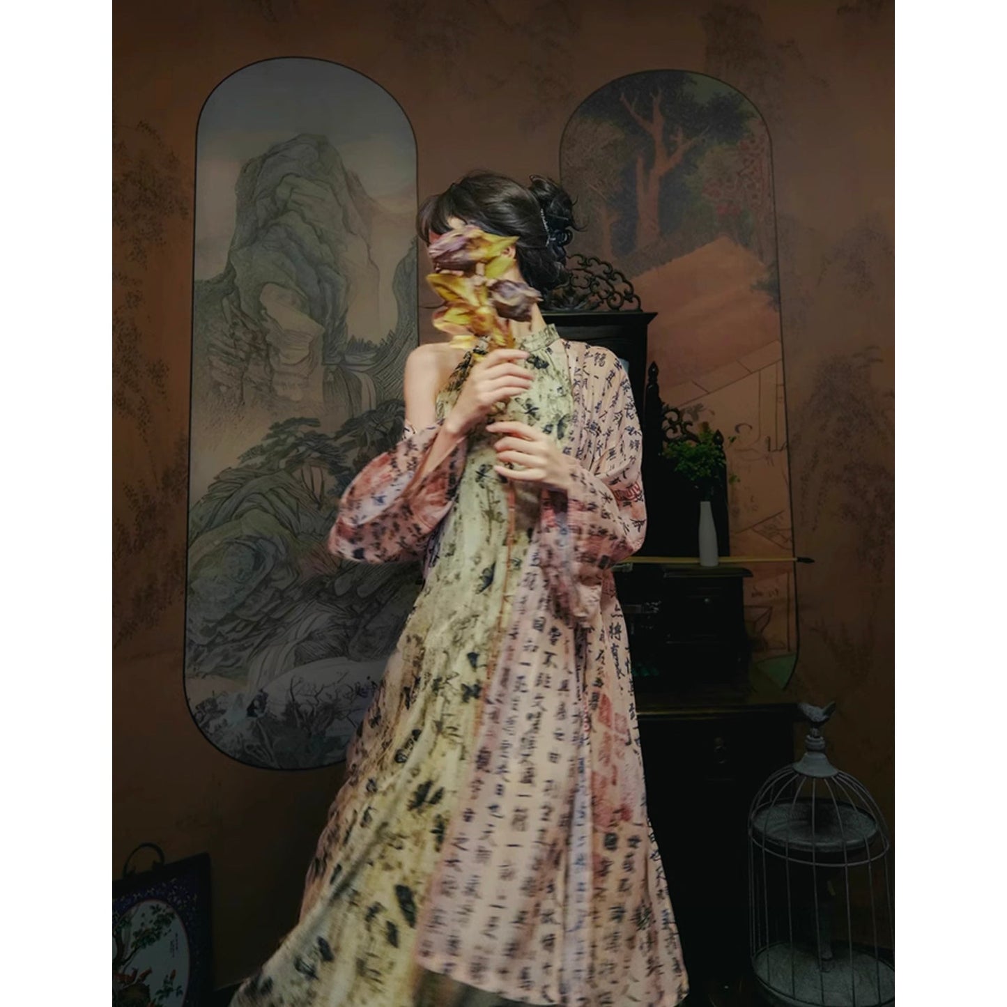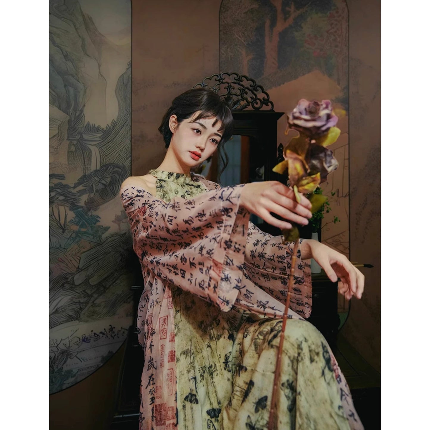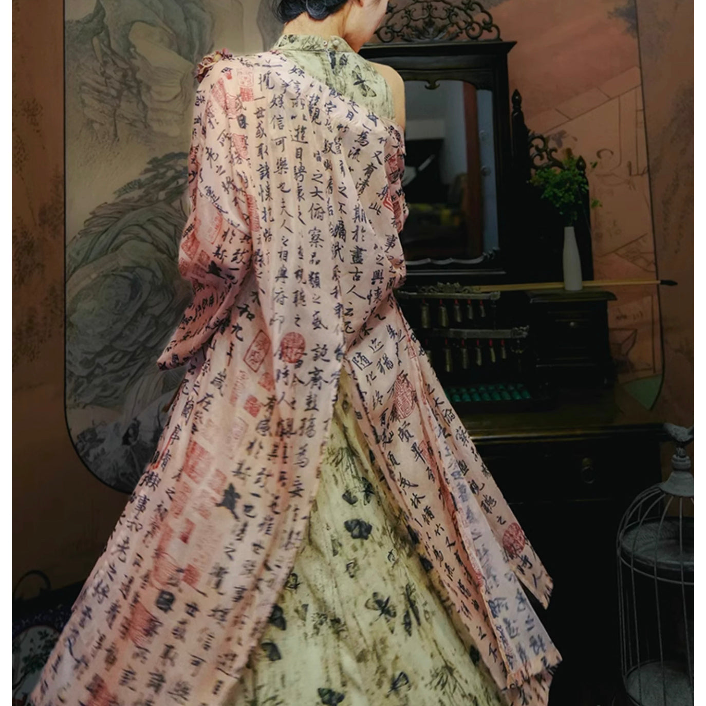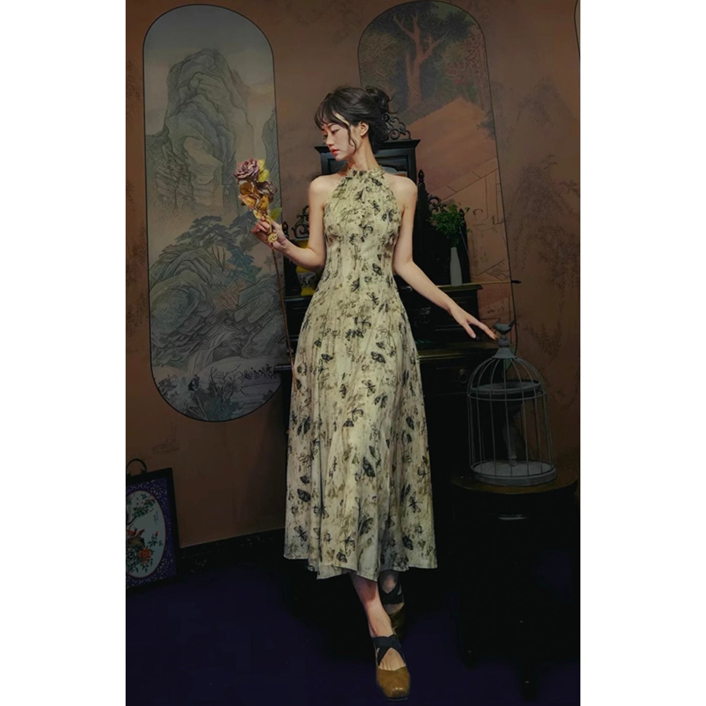 Butterfly ink painting long dress