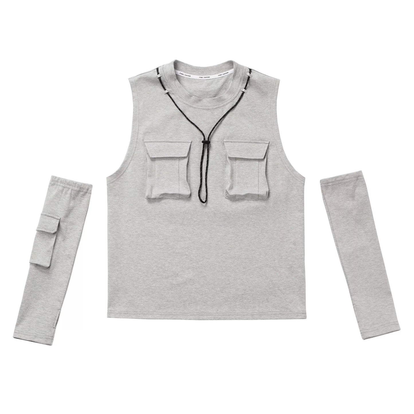 A powerful set reminiscent of the 2000s. For days when you want cuteness, wear a heart-printed short-length top, and for days when you want to add a little edge, wear a sleeveless overtop and arm covers. It is an attractive item with a pop design that makes you want to start dancing.