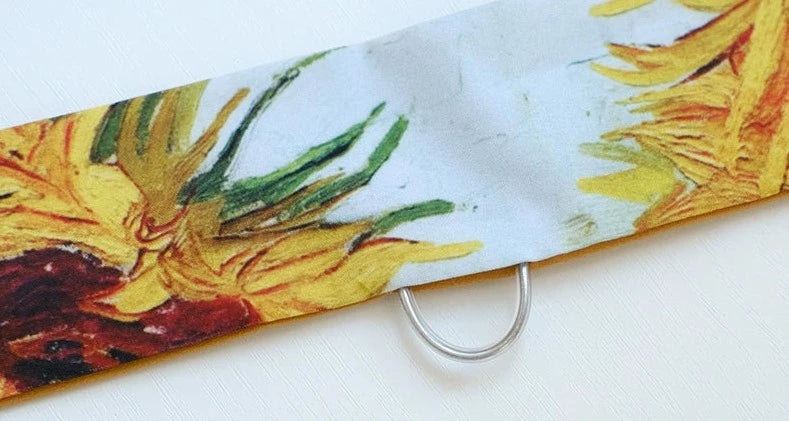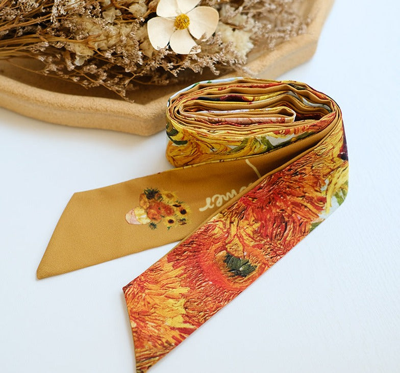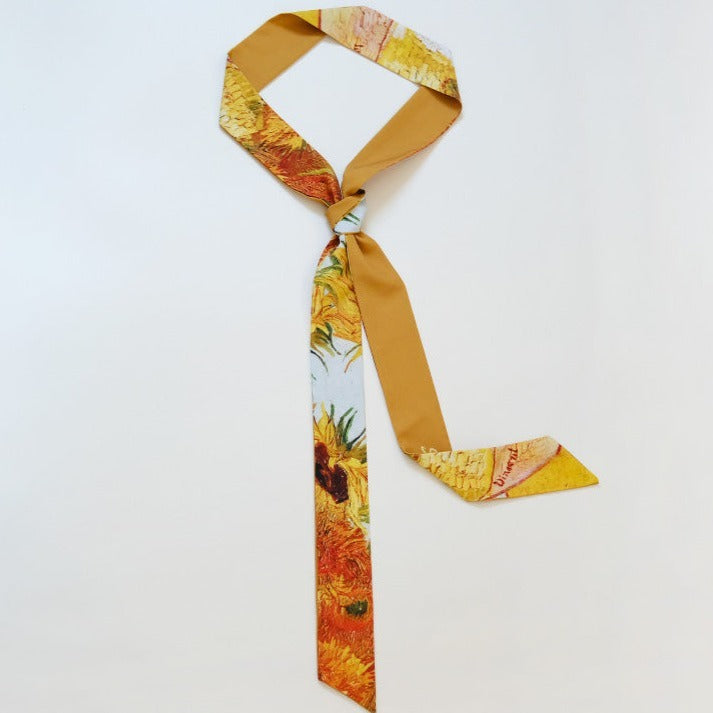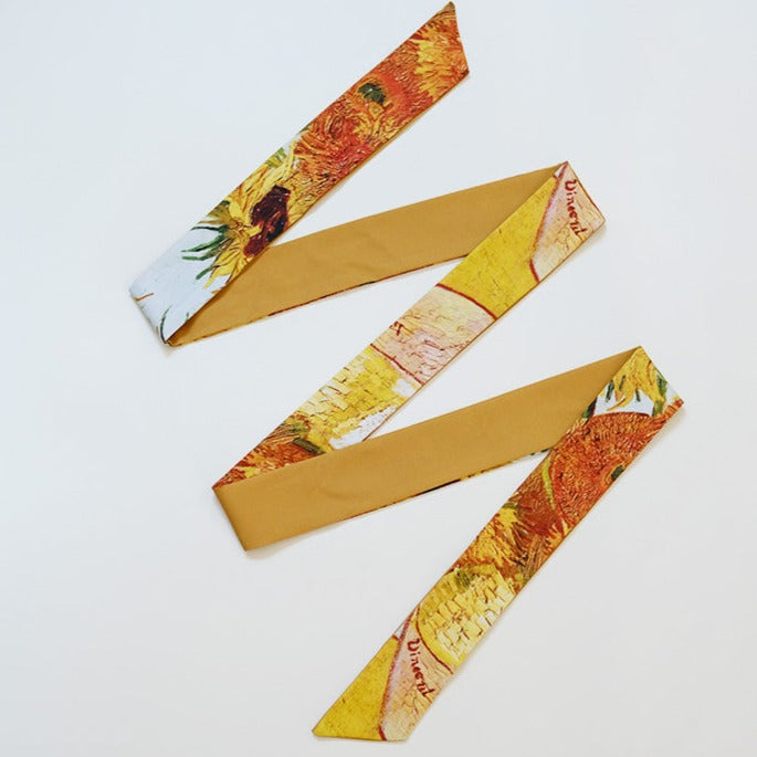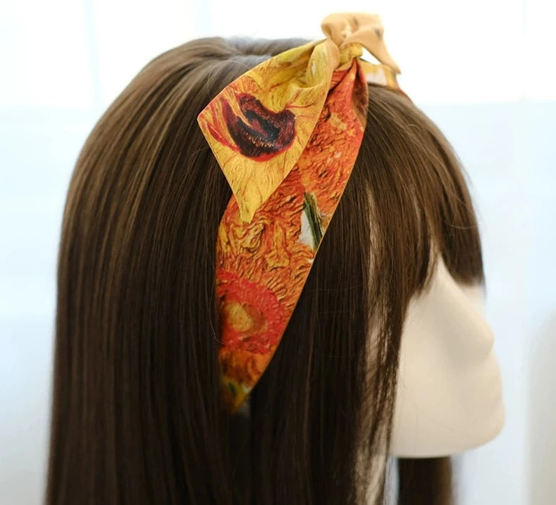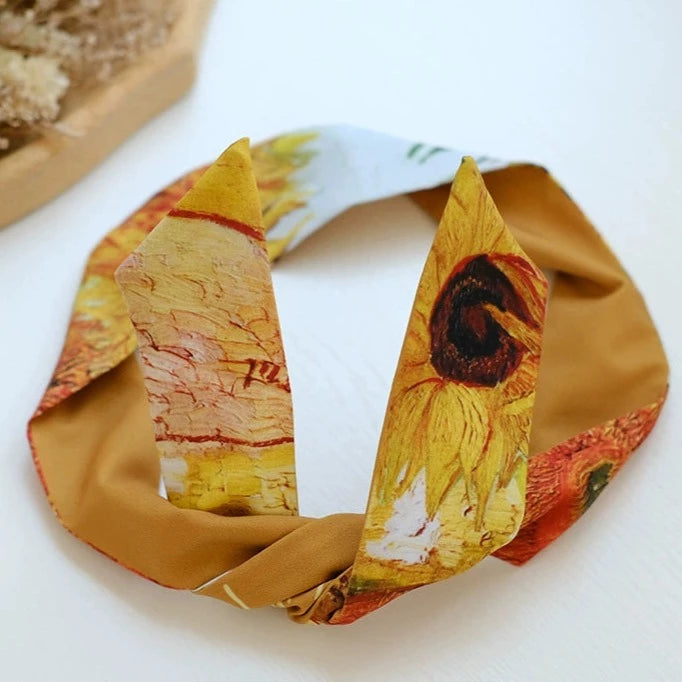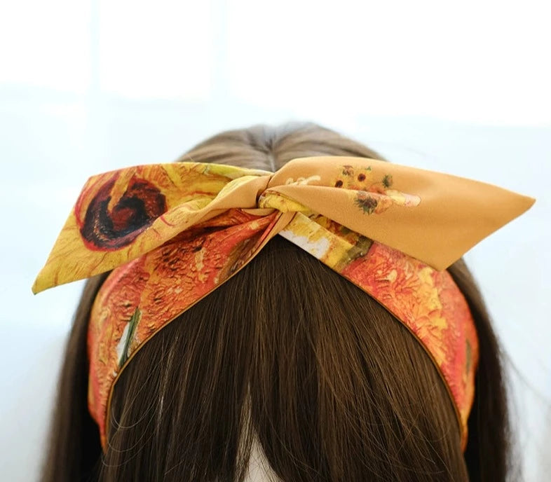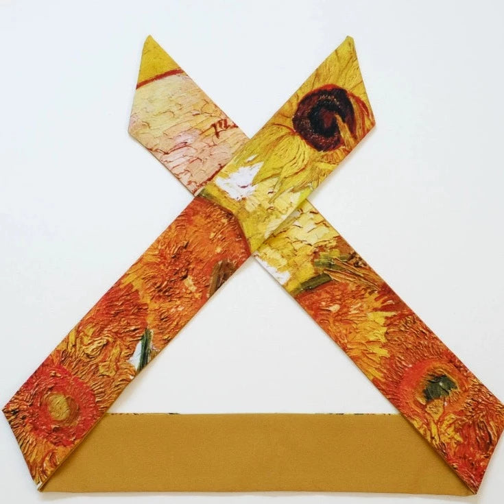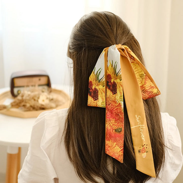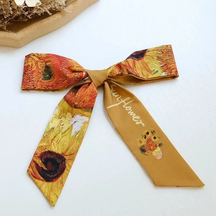 A hair ribbon featuring Van Gogh's "Sunflowers".