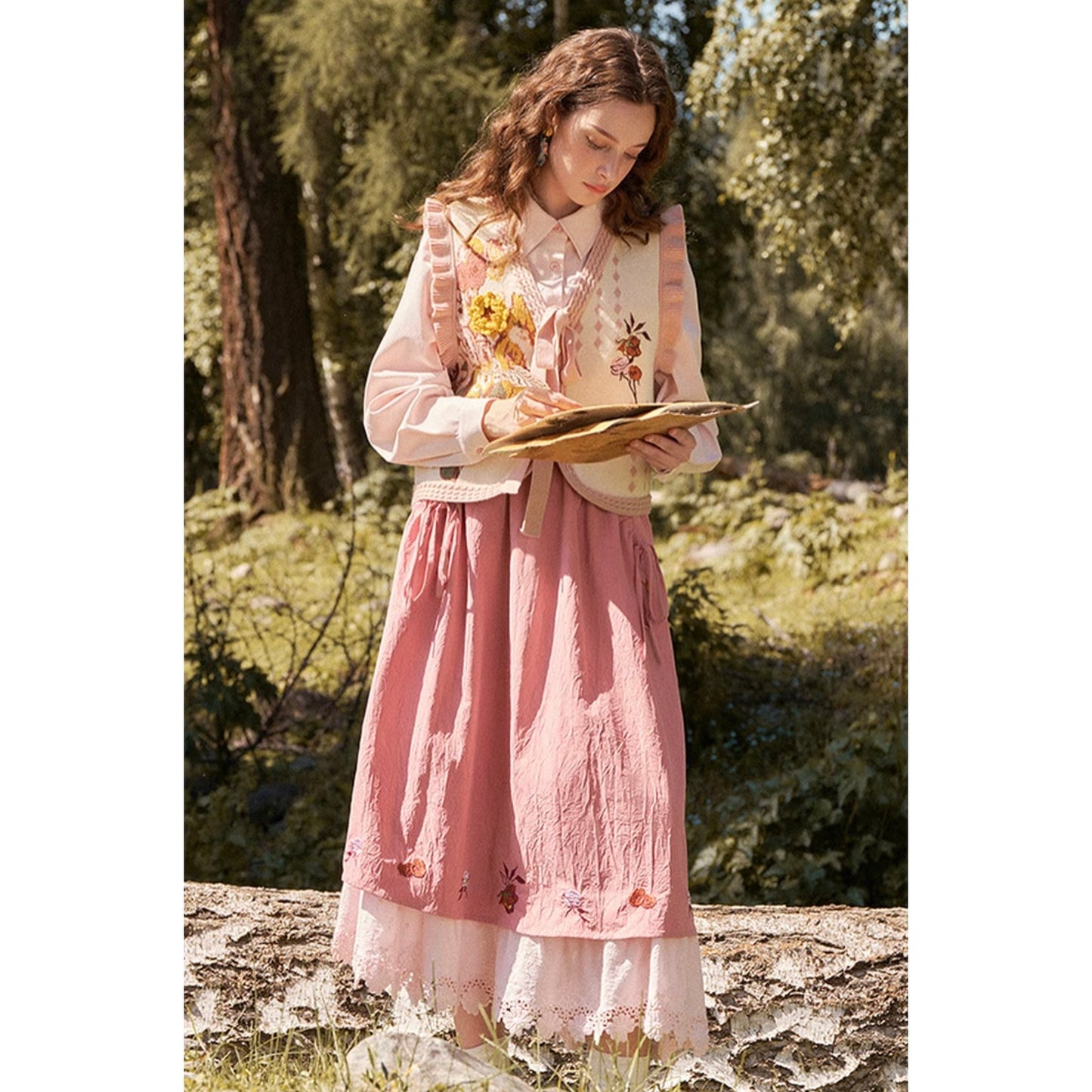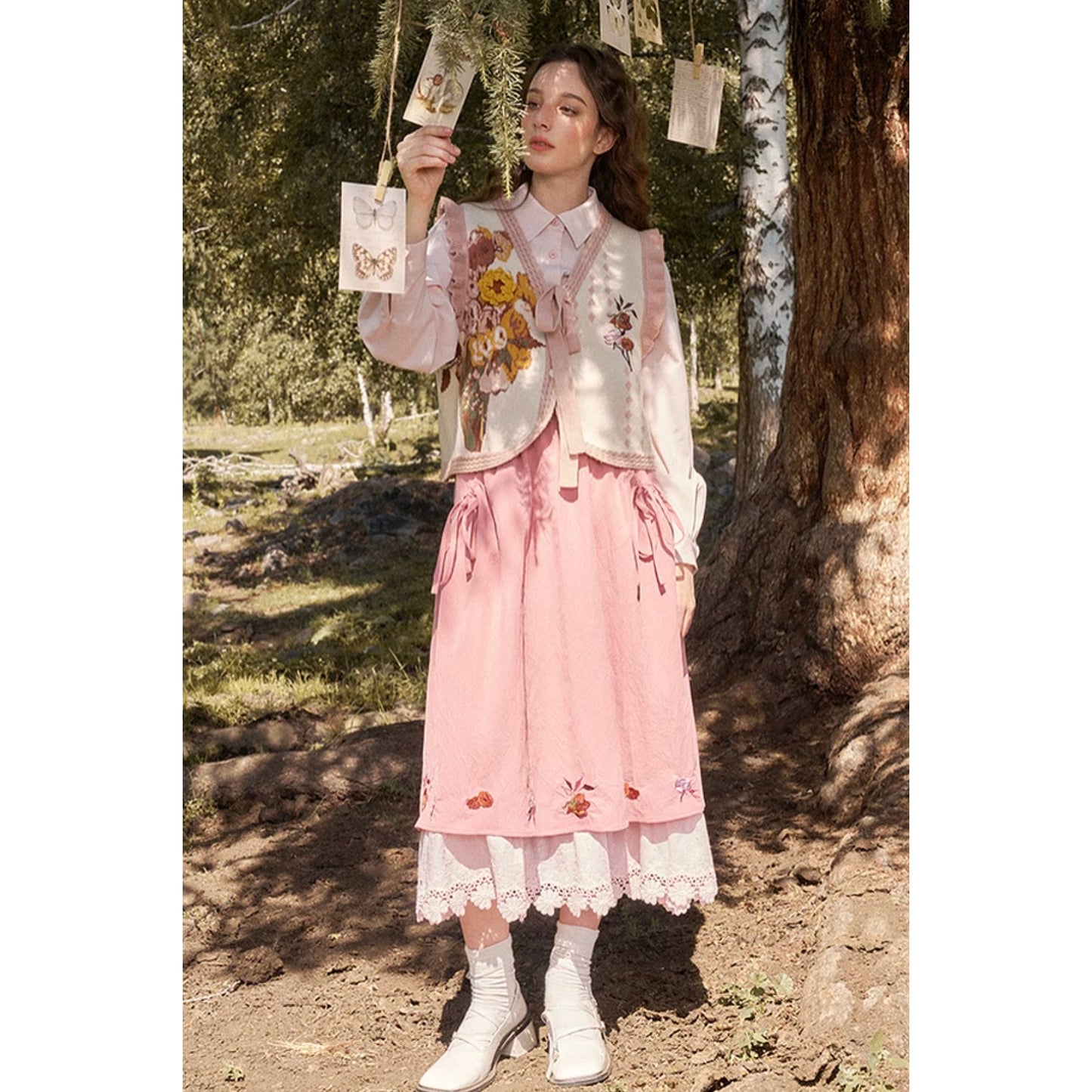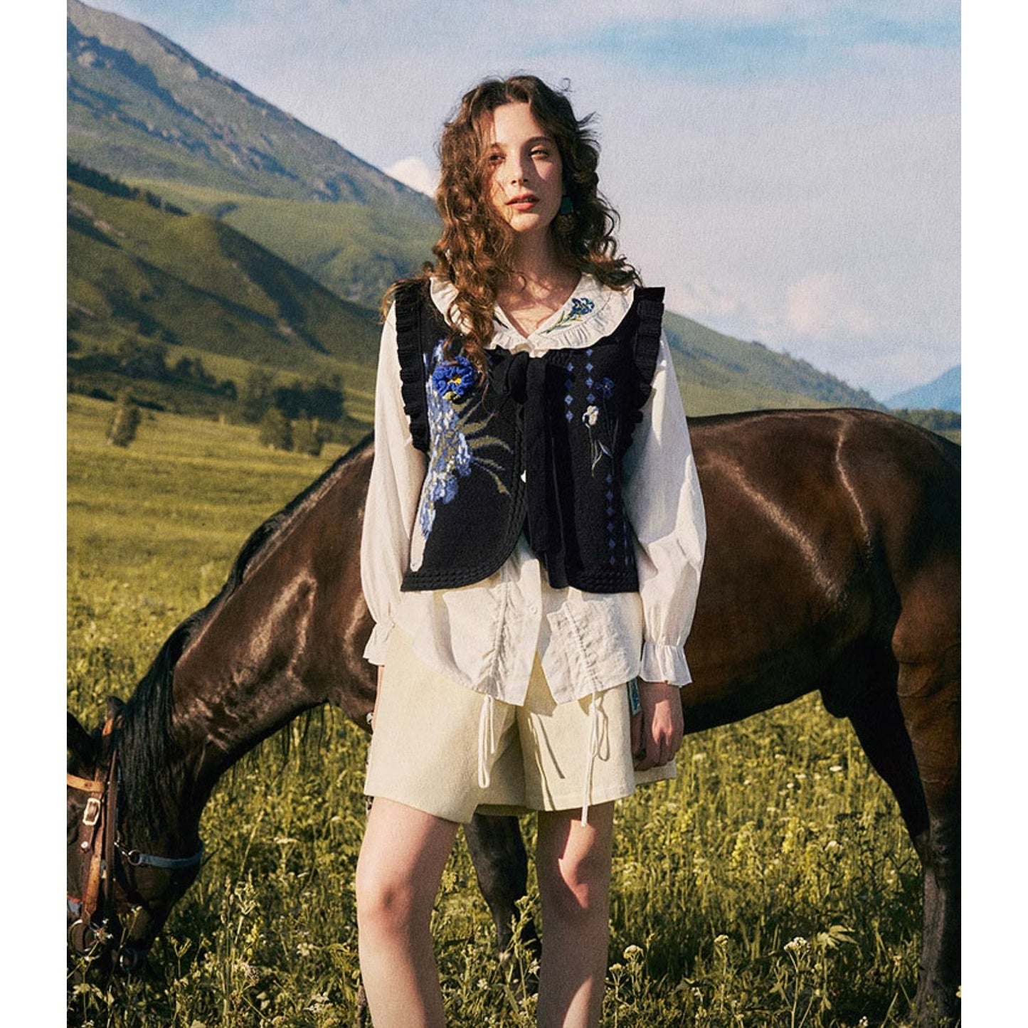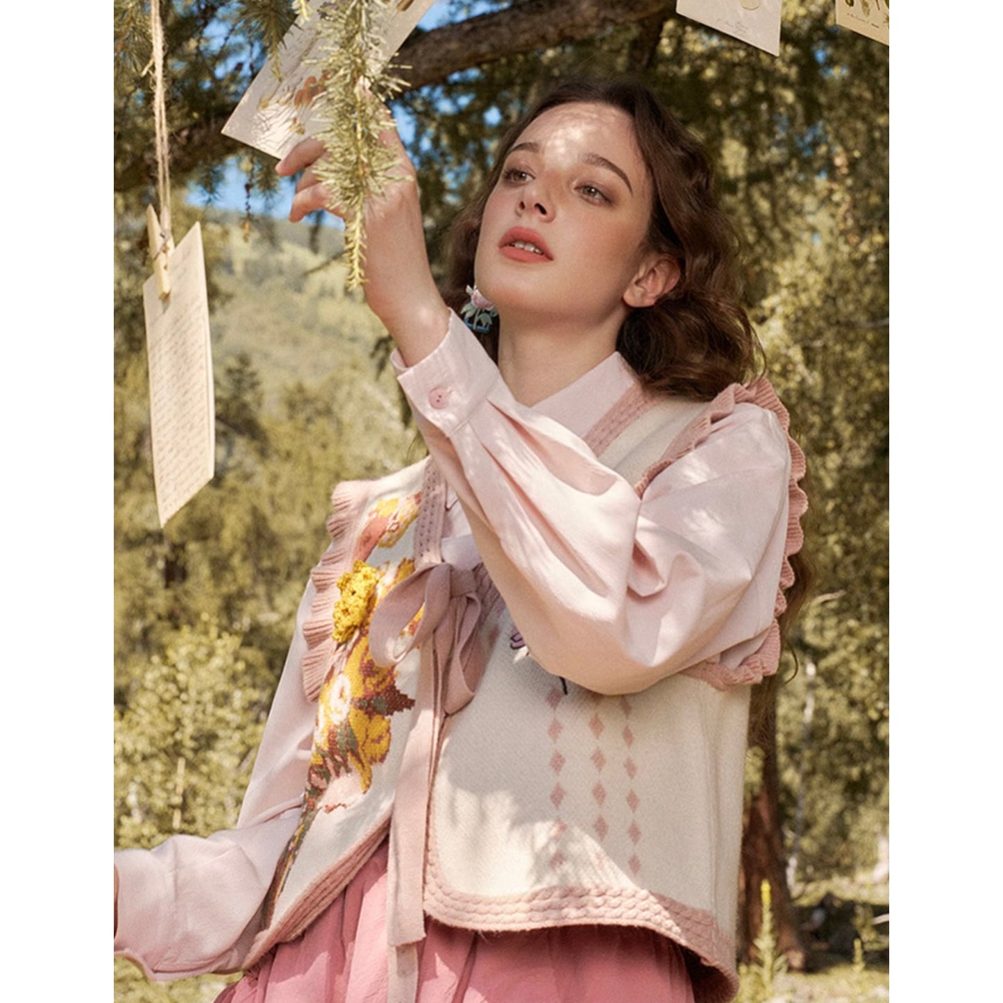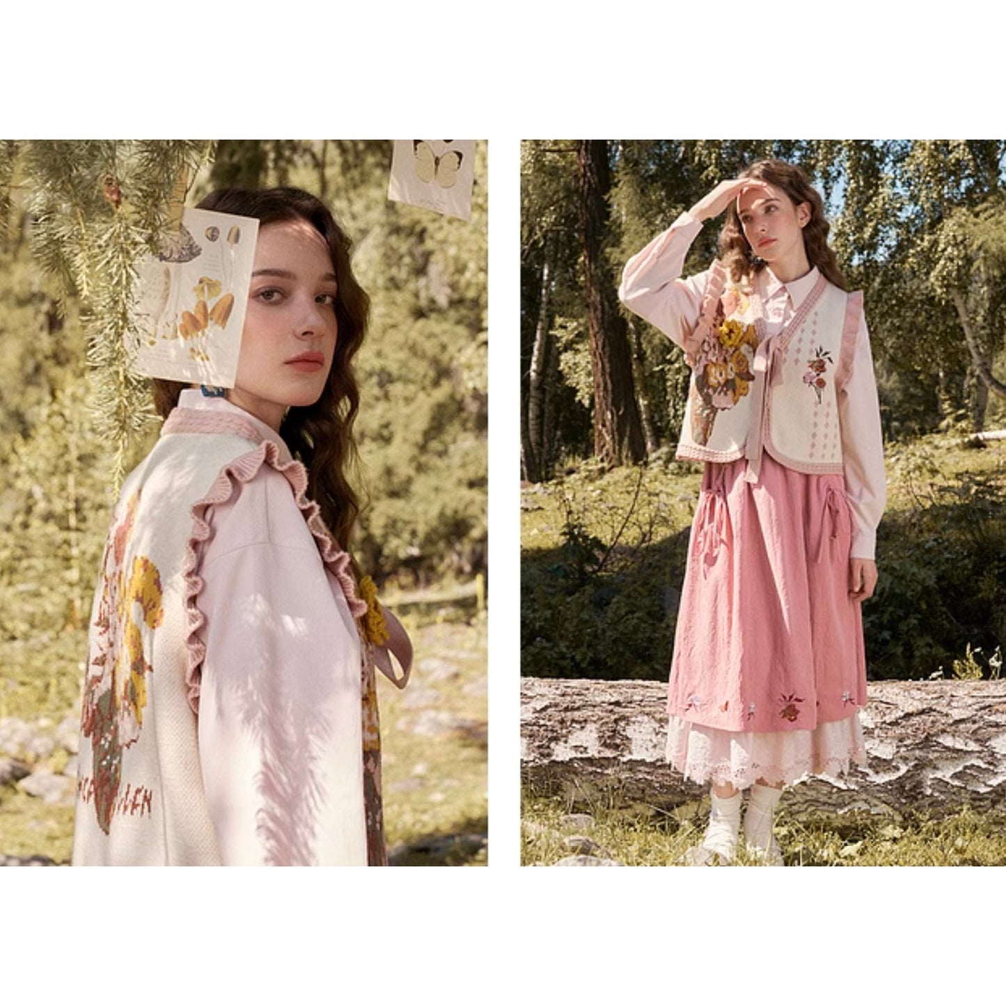 A knitted vest paying homage to Van Gogh's paintings "Vase with Irises" and "Japanese Vase with Roses and Anemones."