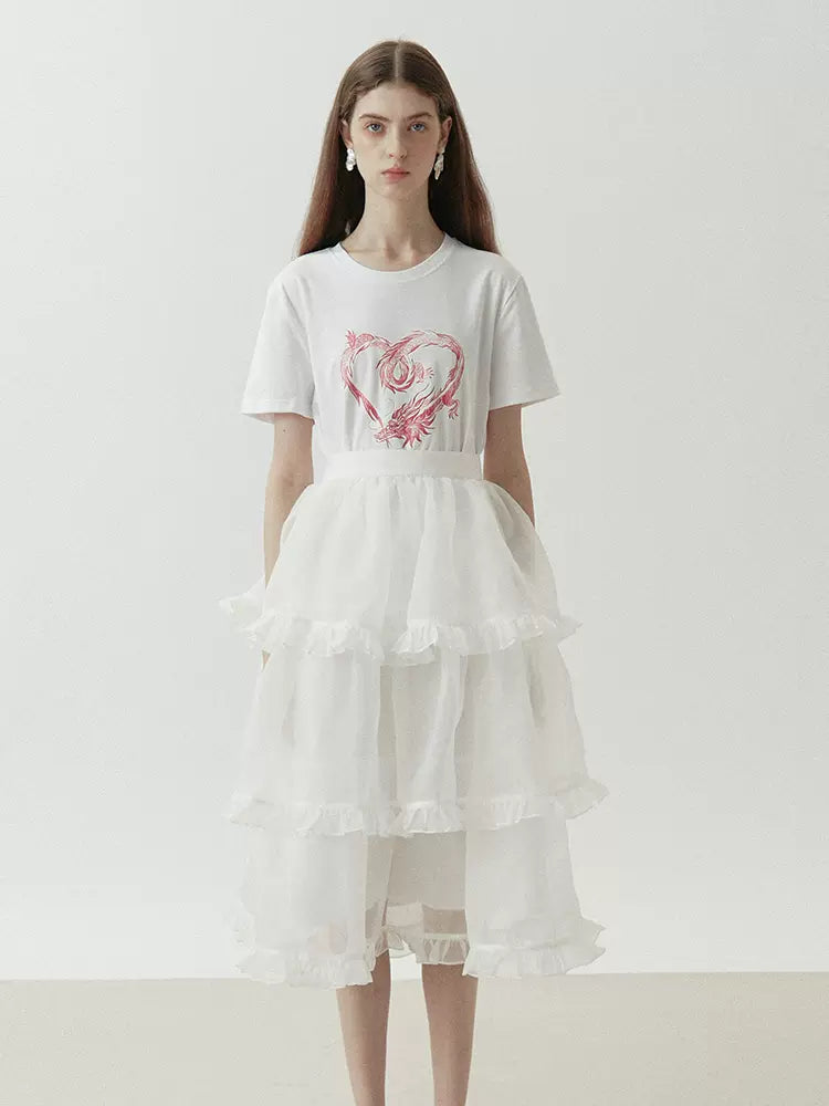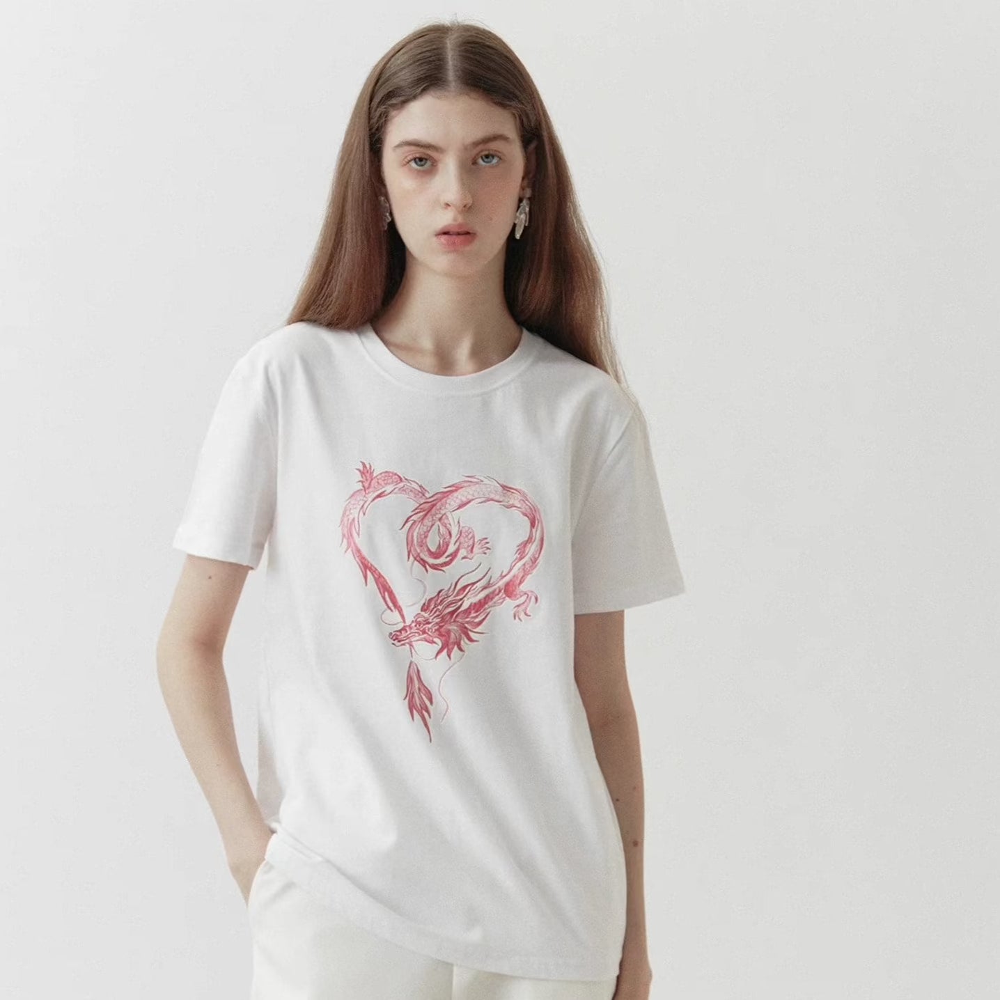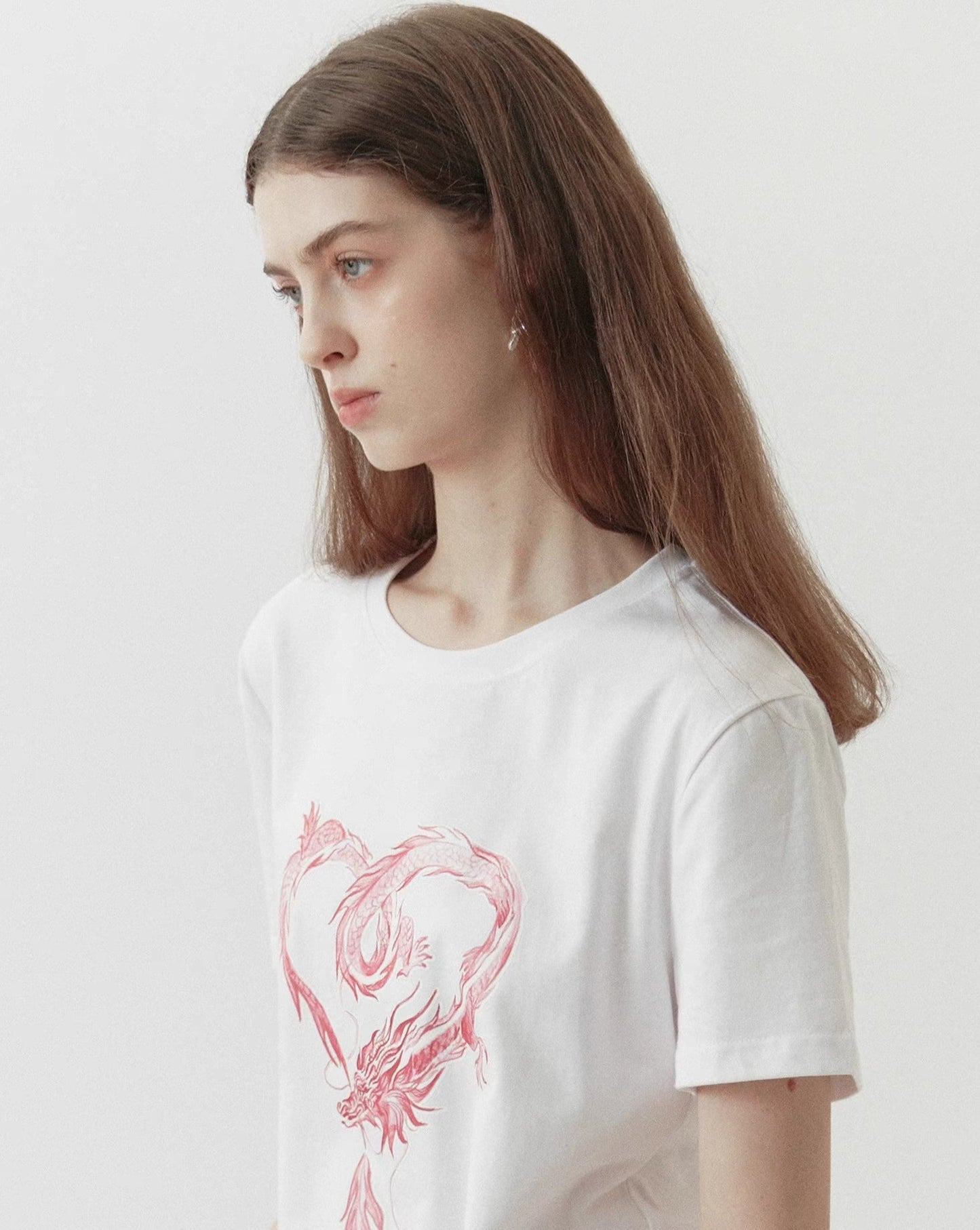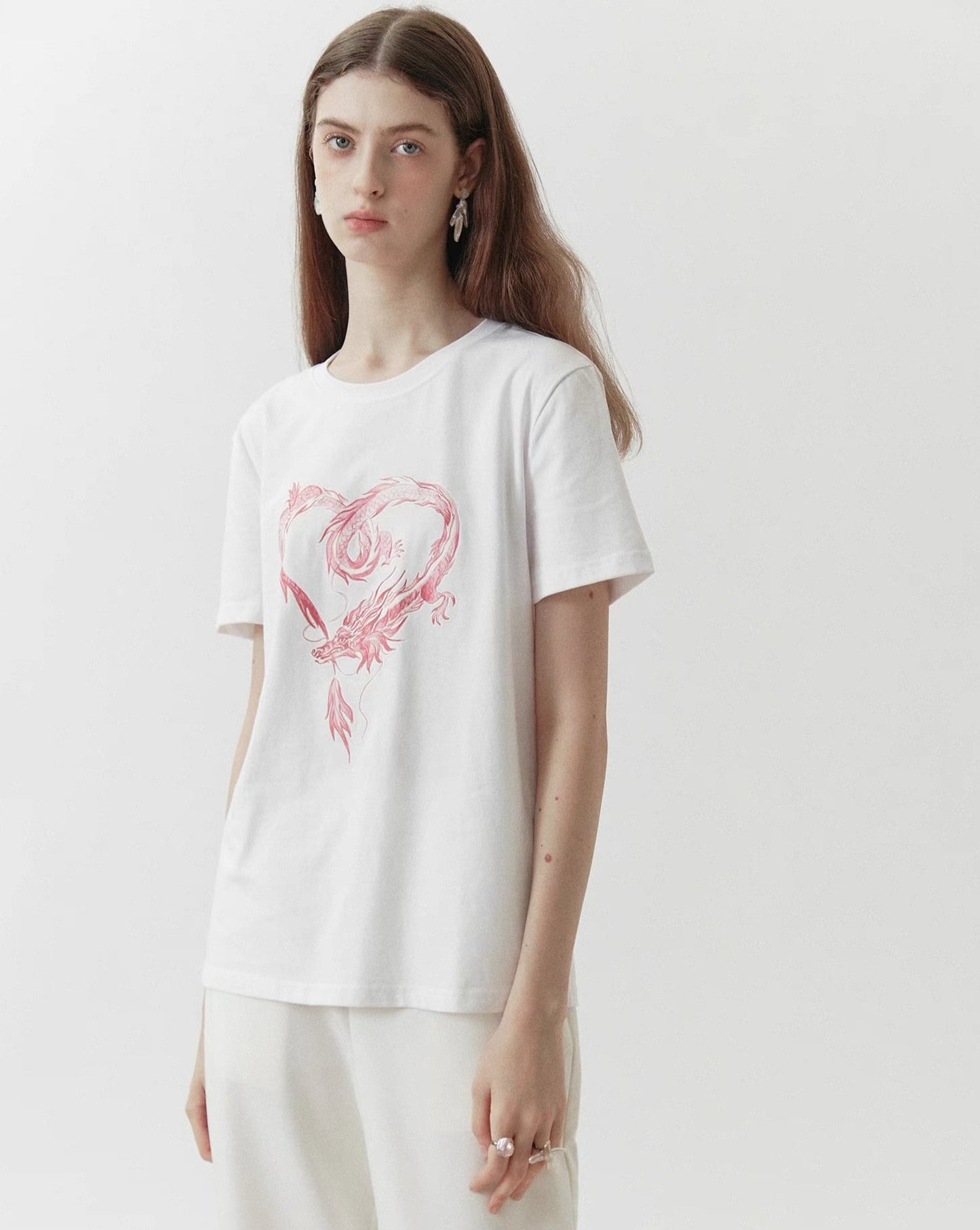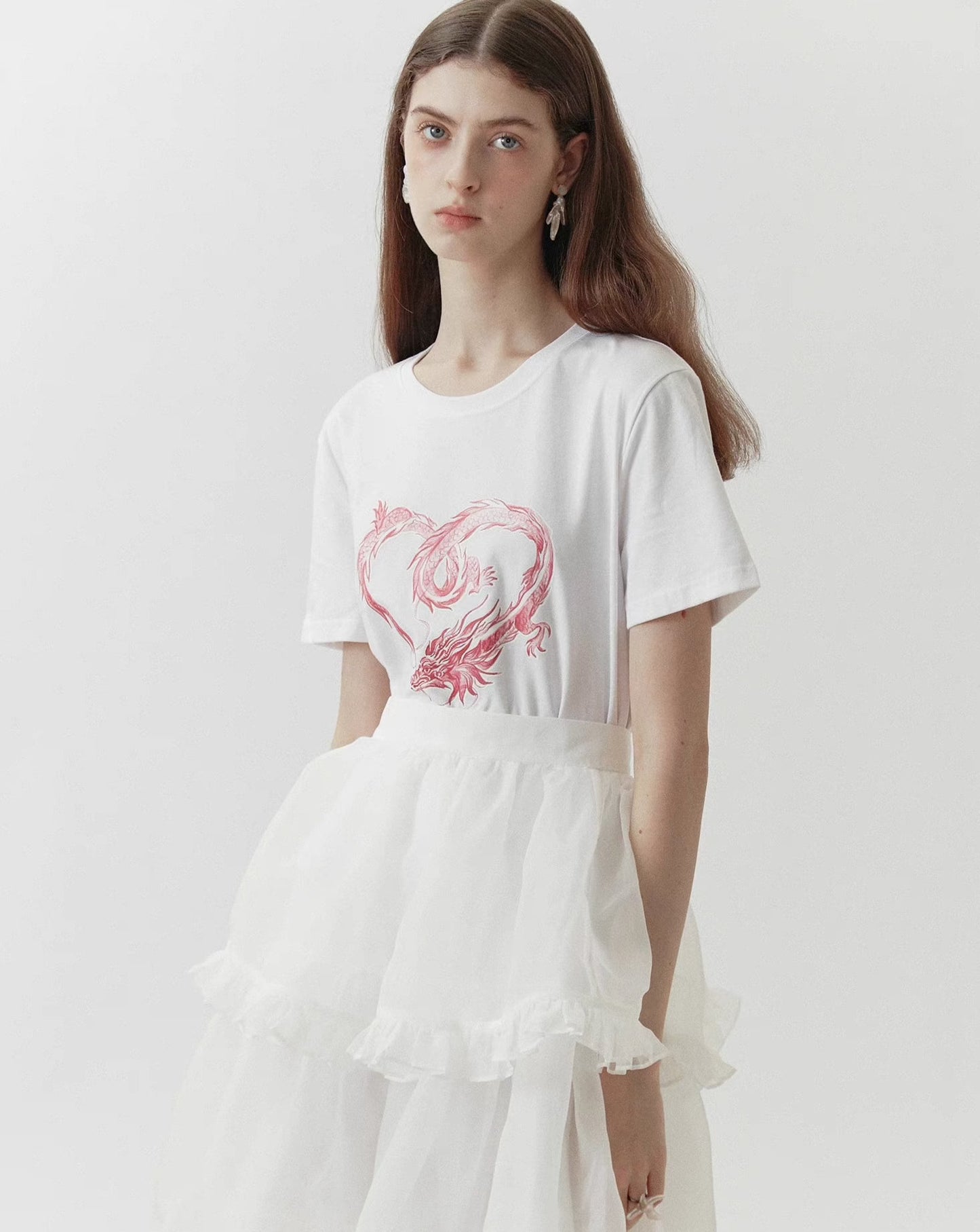dragon sticker white round neck short-sleeved T-shirt
