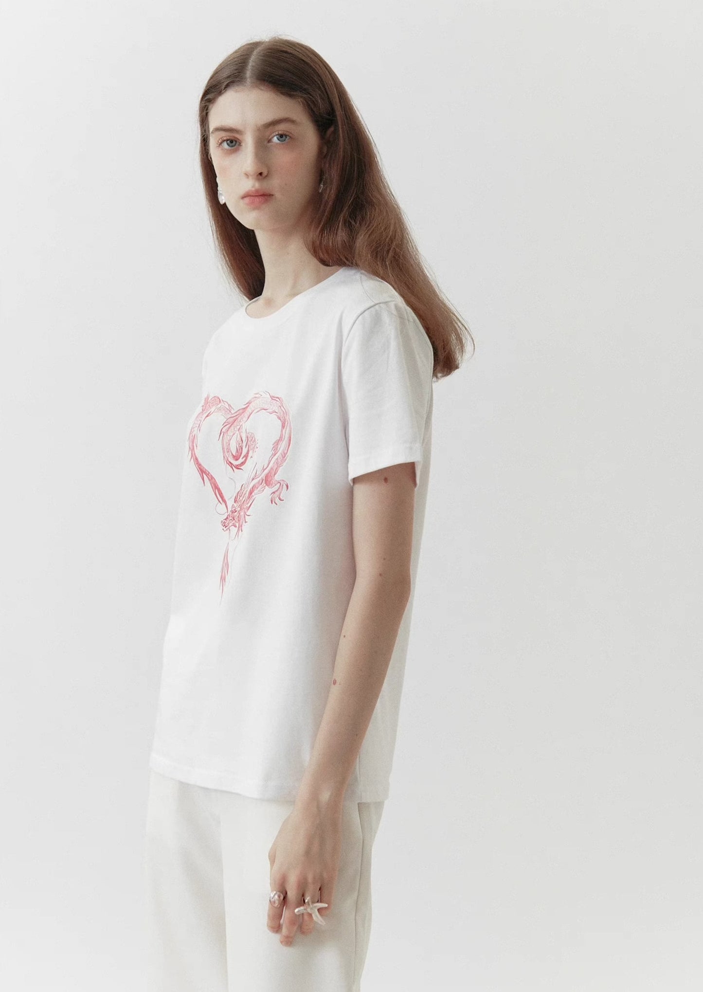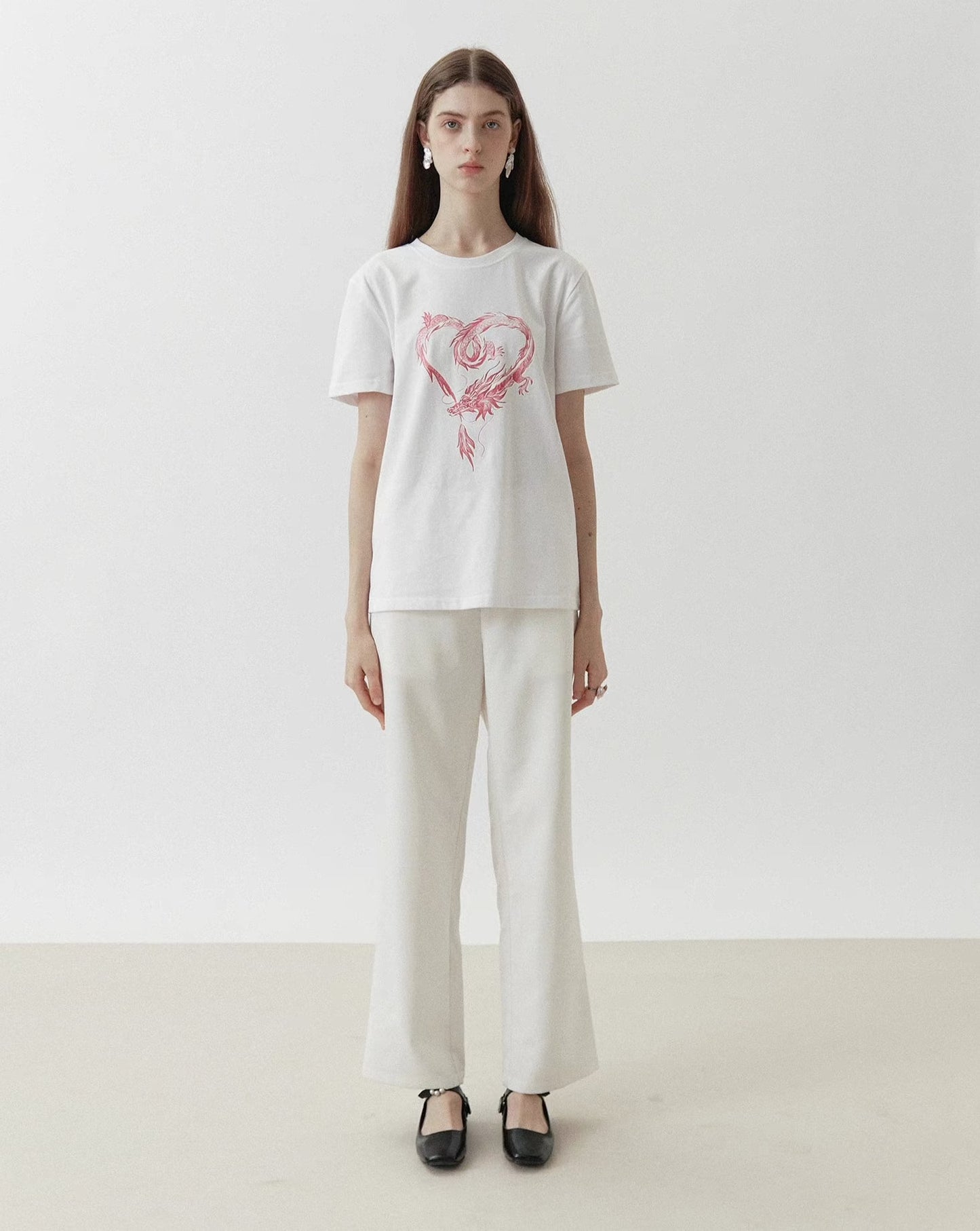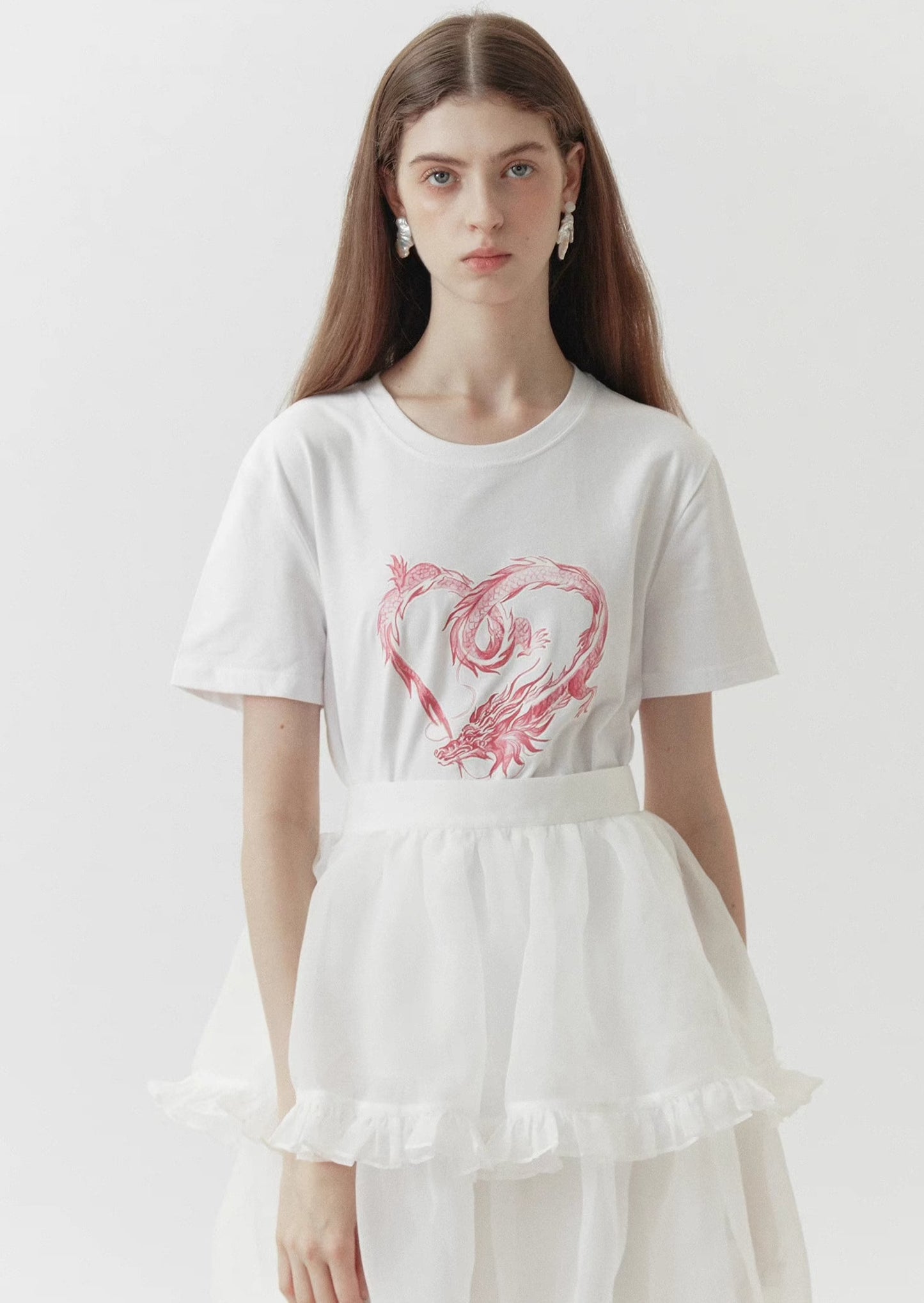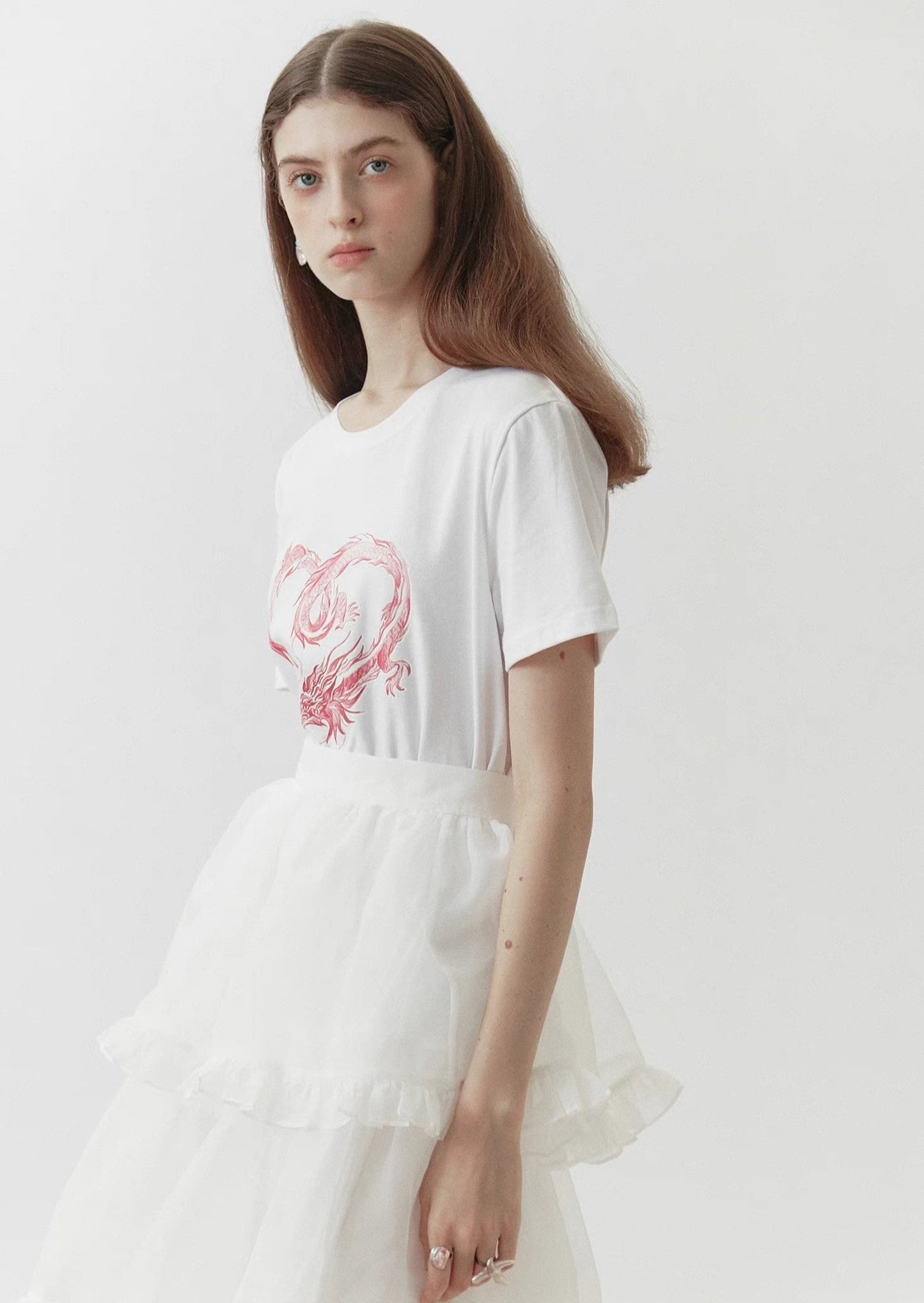 dragon sticker white round neck short-sleeved T-shirt