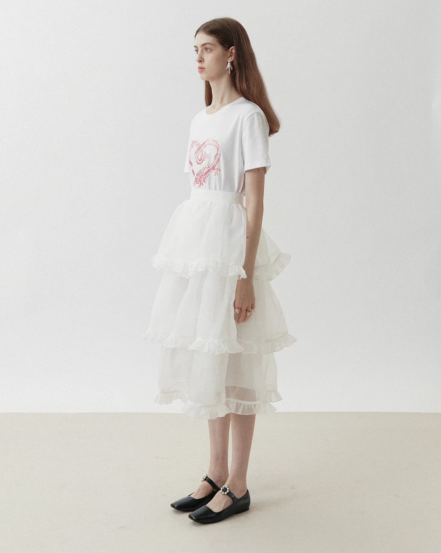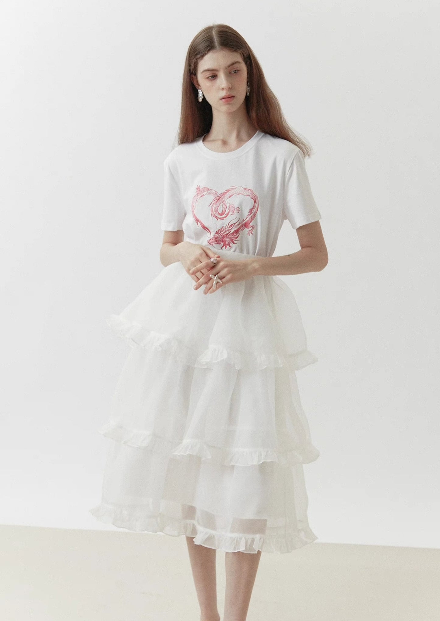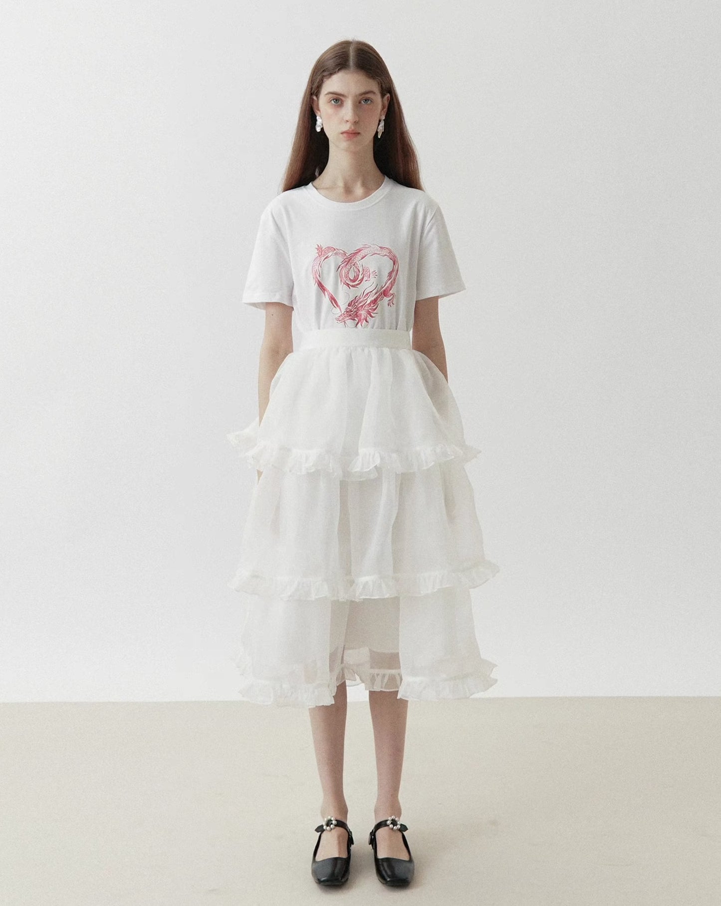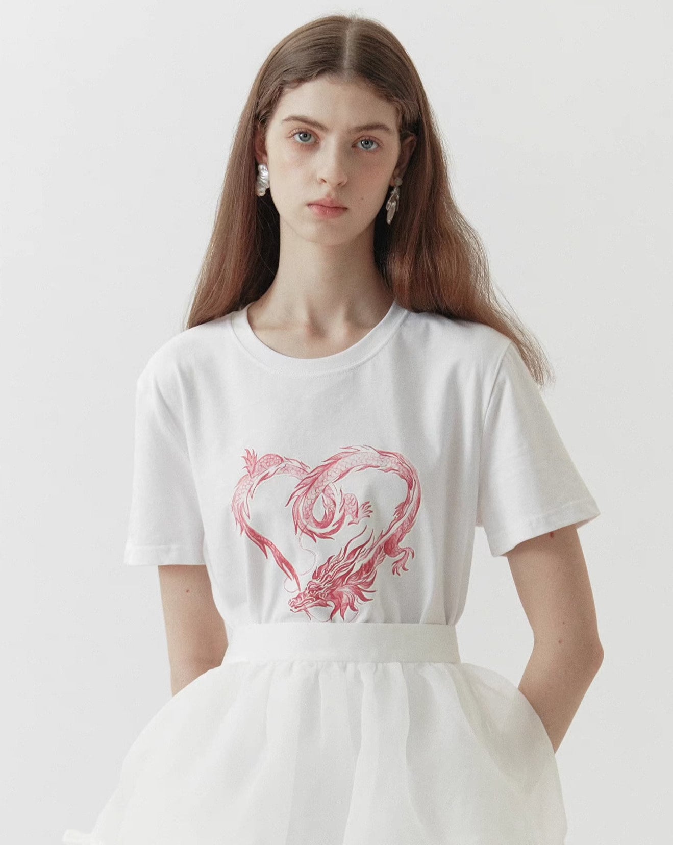dragon sticker white round neck short-sleeved T-shirt