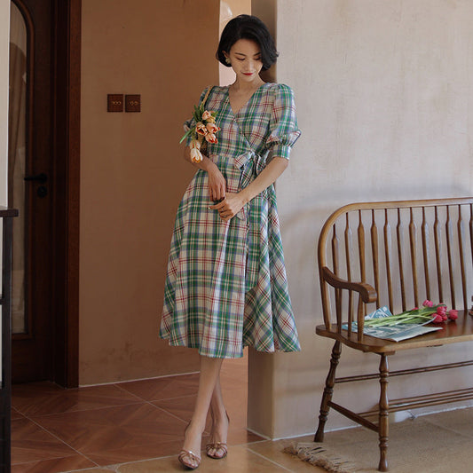 Sold outVendor:Ching's closetGreen red plaid retro dress