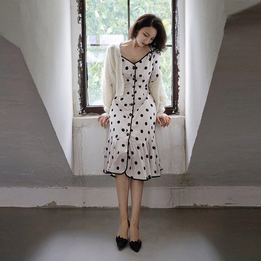 Sold outVendor:Ching's closetblack polka dot fishtail dress