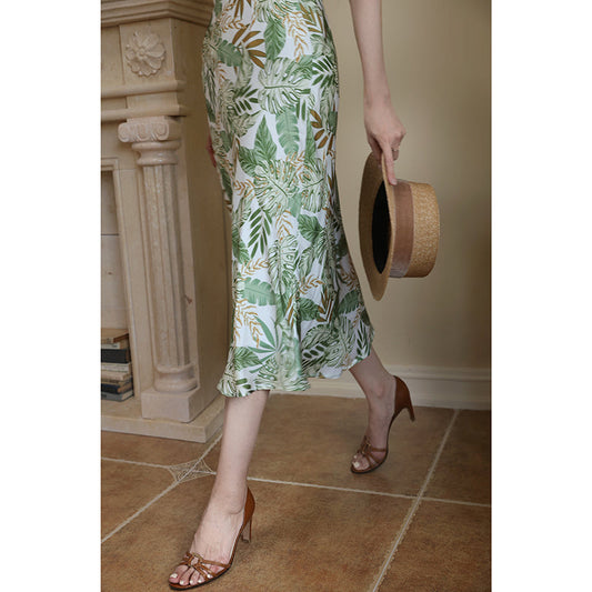 Sold outVendor:Ching's closetJungle Leaf Shade Pattern Slim Skirt