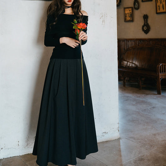 Sold outVendor:DQLSblack lady velvet pleated skirt