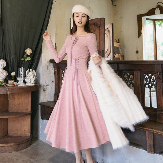 Oil painting floral pattern jacquard layered dress and high neck blouse
