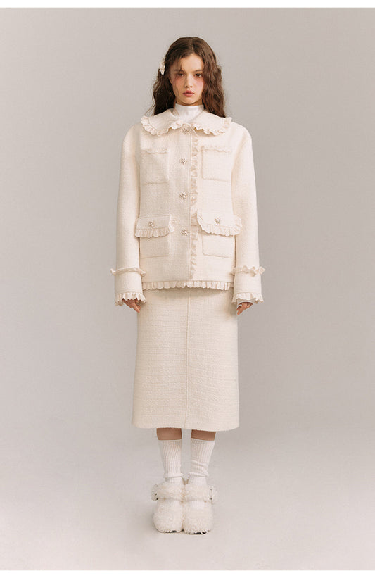 Cherry blossom petal gloss jacket and long cocoon skirt