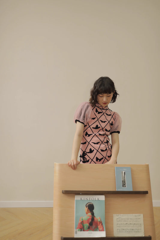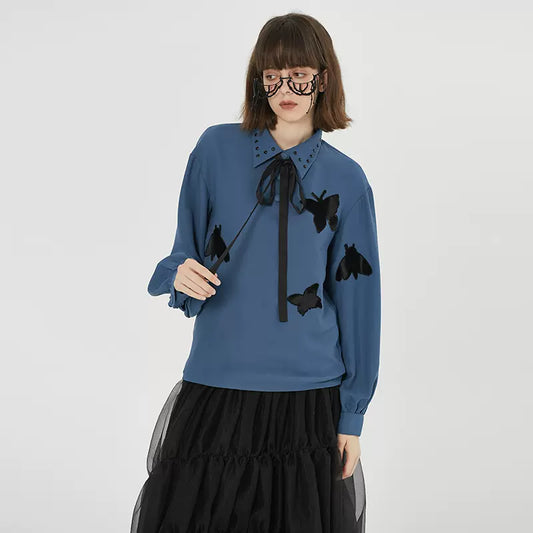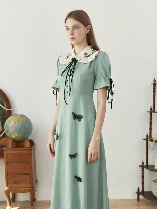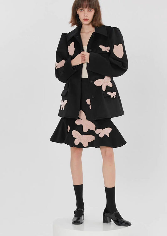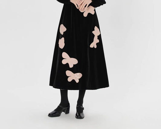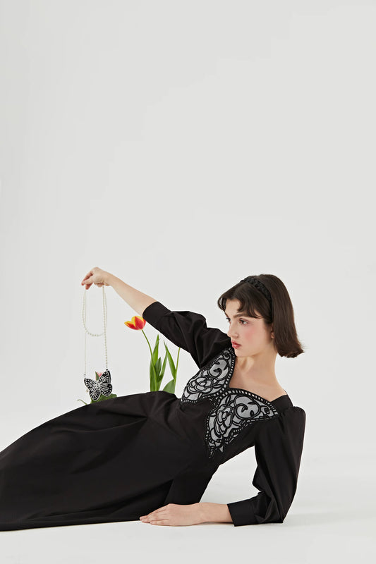 Square Neck Black Butterfly Velvet Long Sleeve Dress