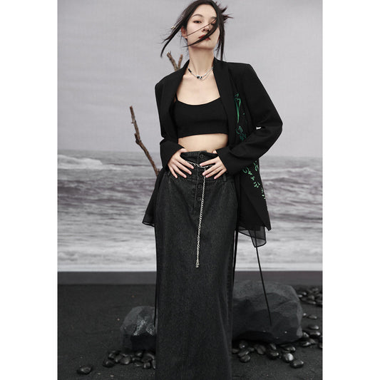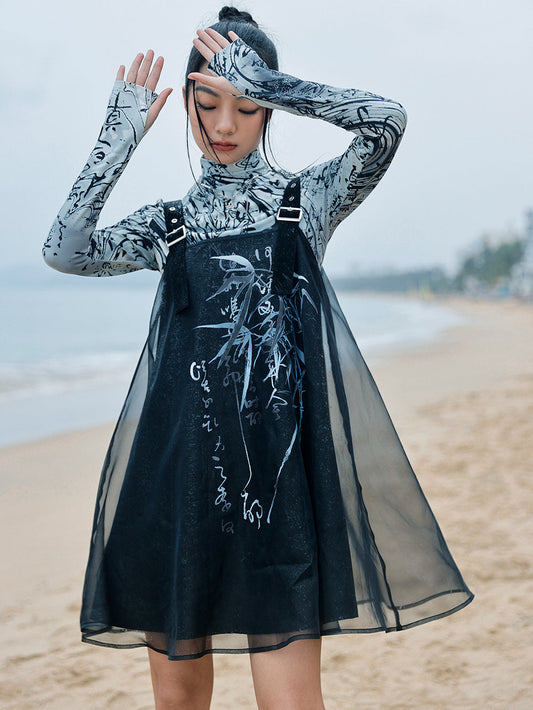 Moonlight bamboo grove pattern Chinese jumper skirt