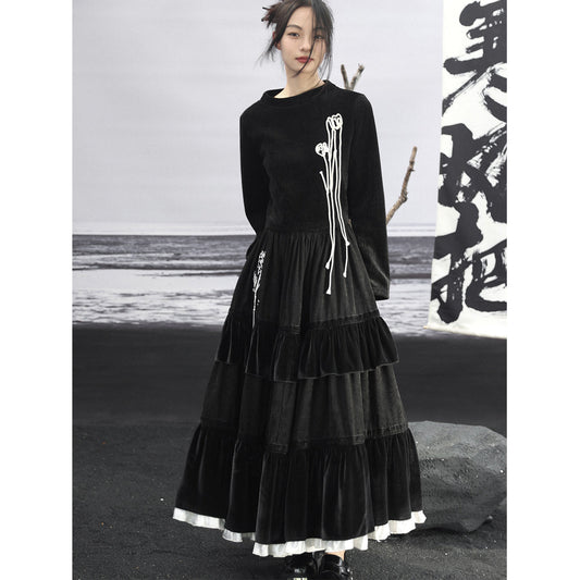 Sold outVendor:DQLSBlack Lady's Velvet China Dress