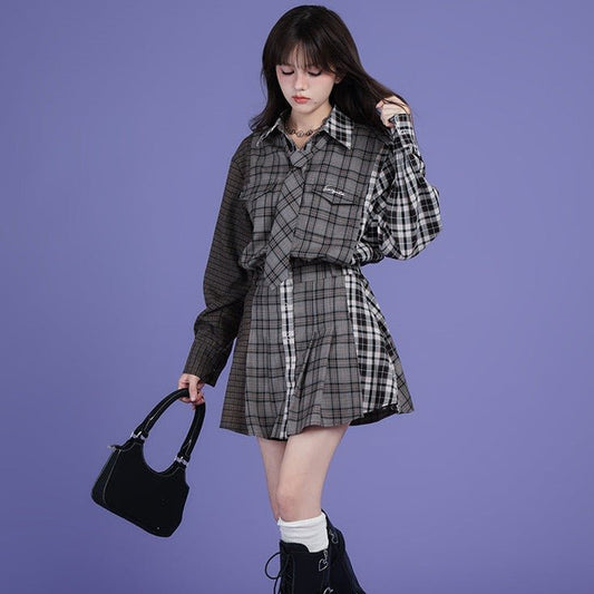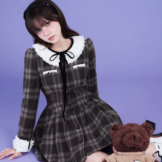 Sold outVendor:Cong Tailorred plaid woolen v-neck dress