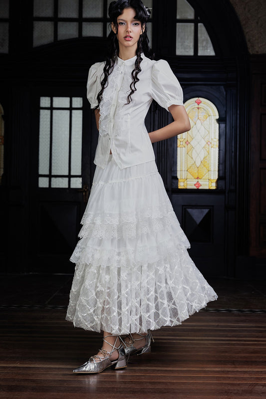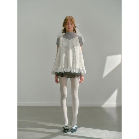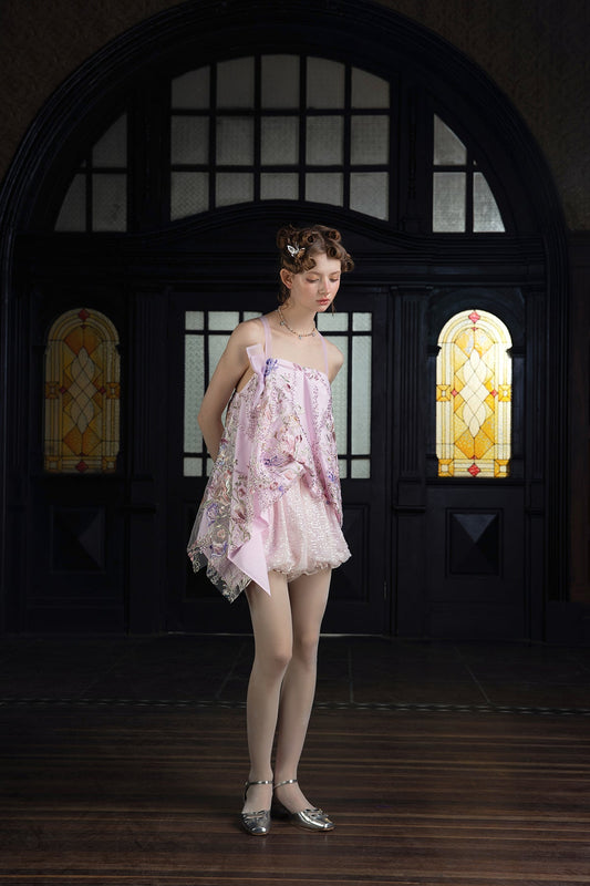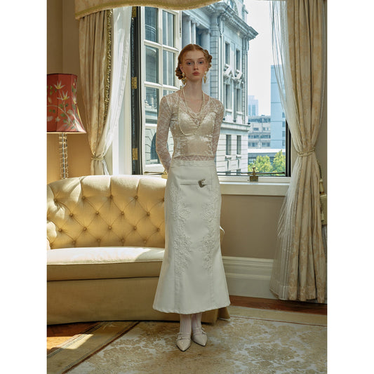 Lily petal strap top and embroidered lace skirt