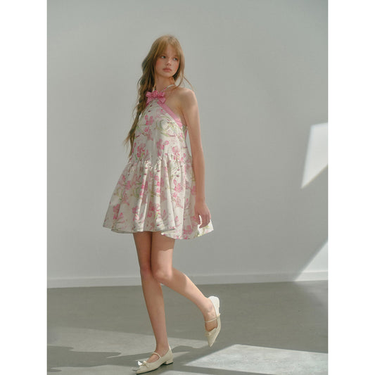 Pink lily watercolor halter neck dress