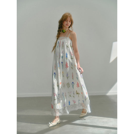 Floral watercolor embroidery strap dress