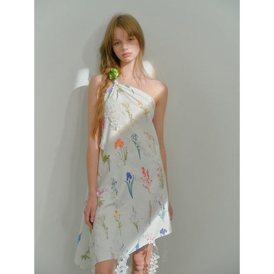 Floral watercolor embroidery asymmetric dress