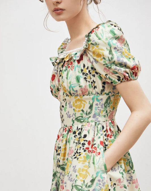 panda original off-white floral fabric tutu dress