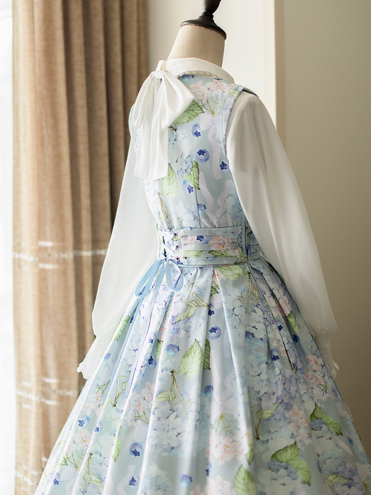 Light blue watercolor jumper skirt / high neck ribbon blouse