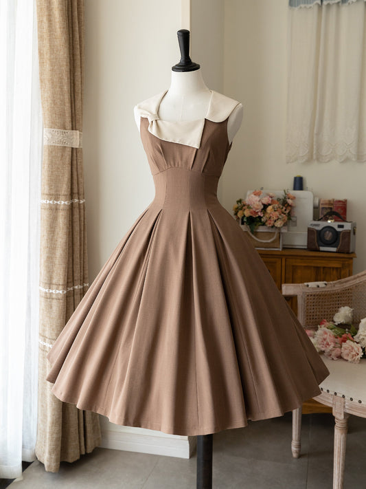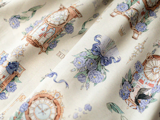 Western clock corset skirt and high neck ribbon blouse (Beige)