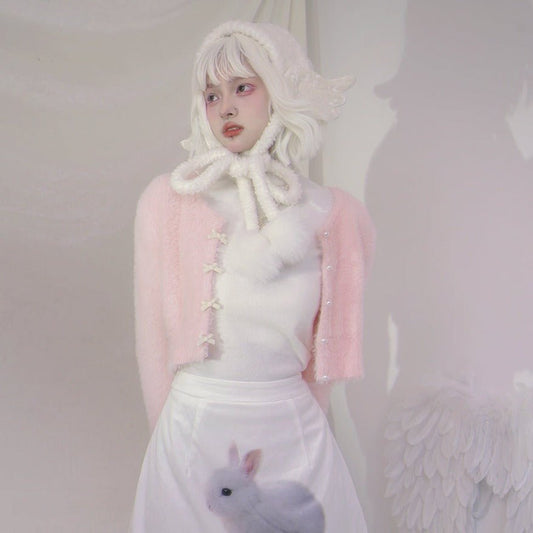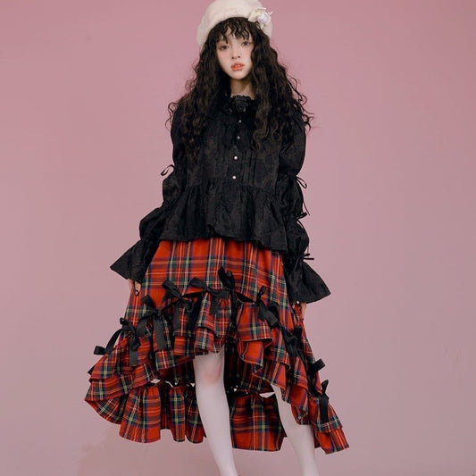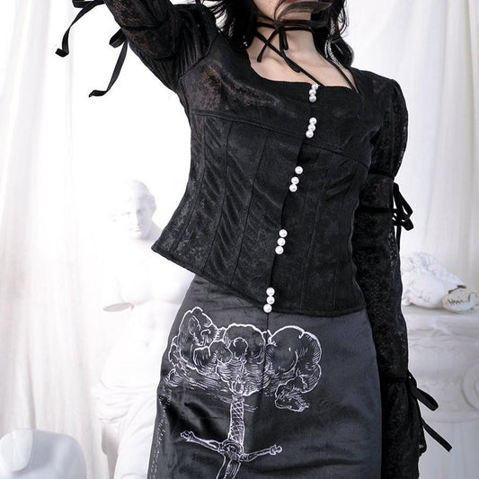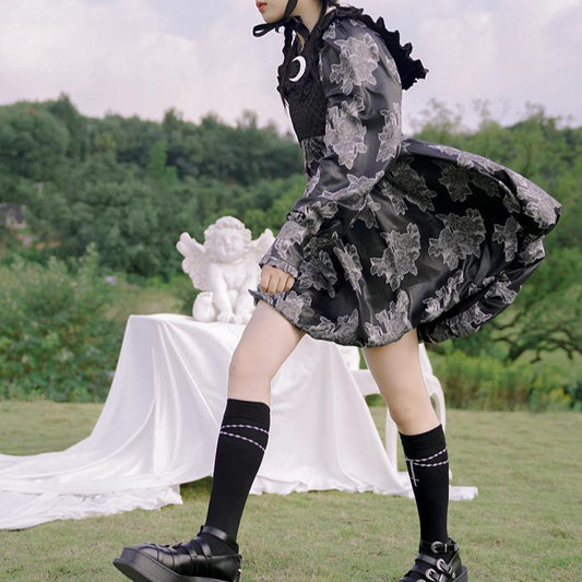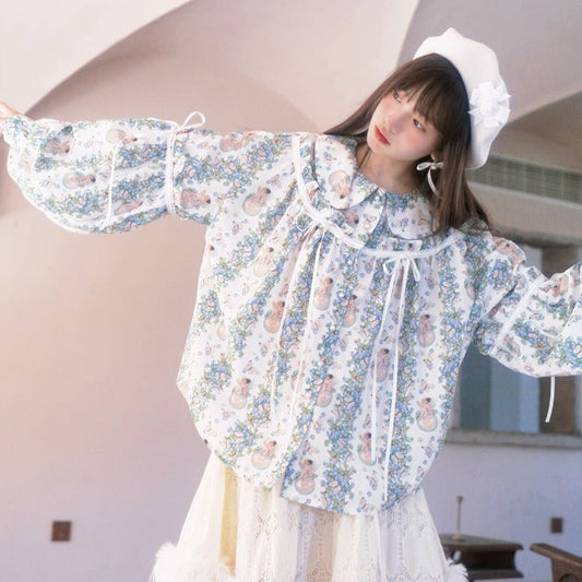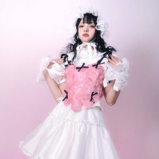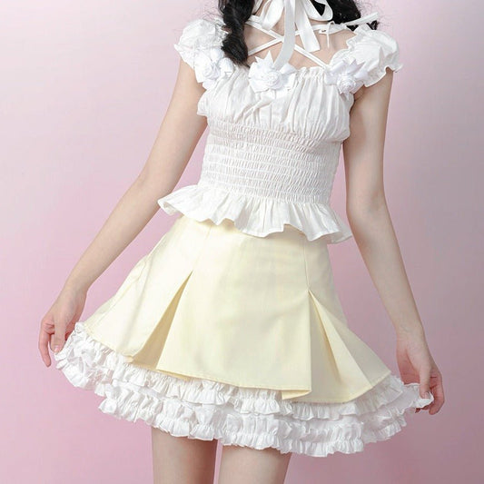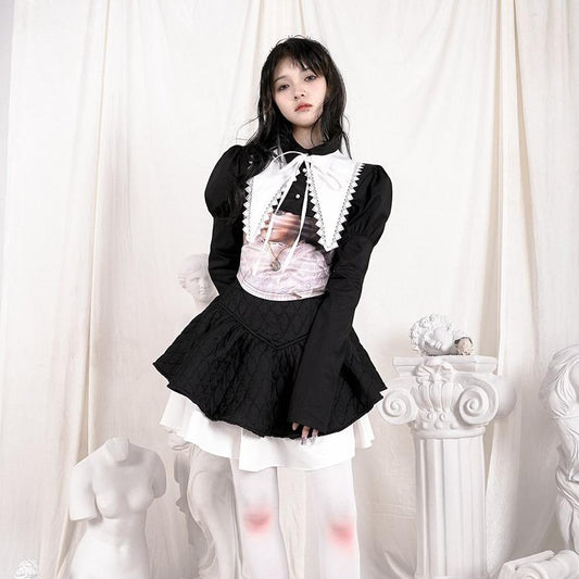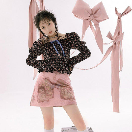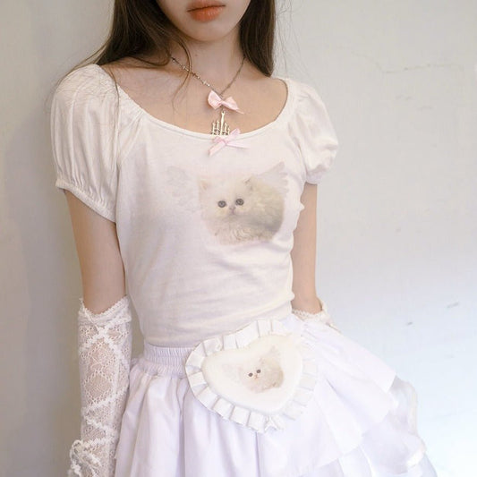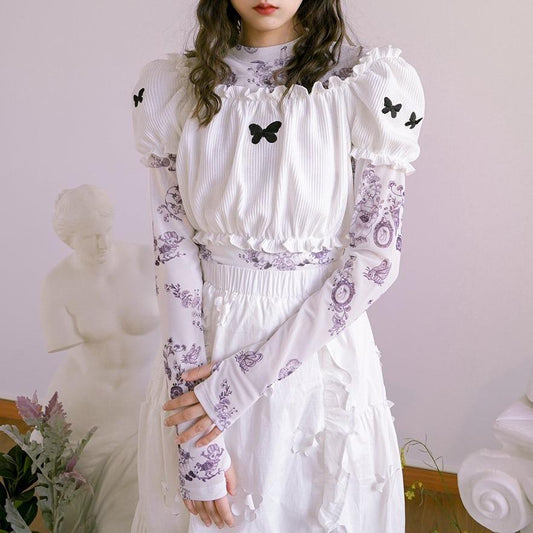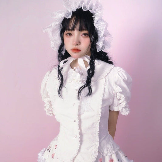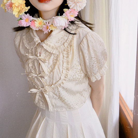 Fancy Jacquard Petal Puff Sleeve Short Sleeve Shirt