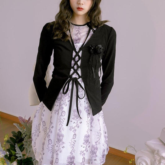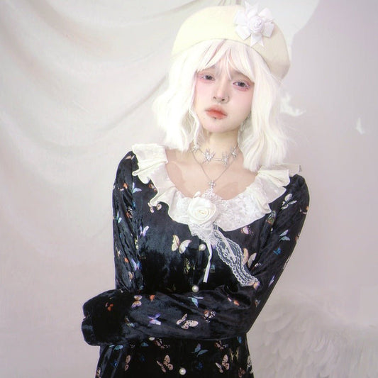 Butterfly Dance Ruffle Velvet Long Sleeve Dress