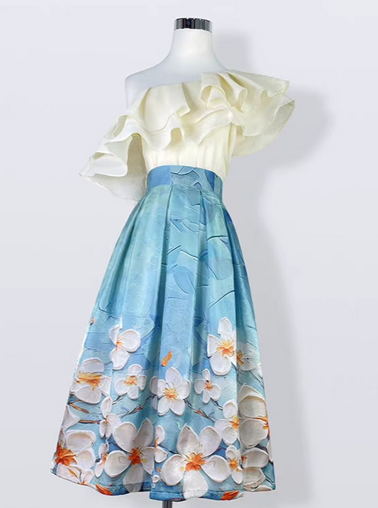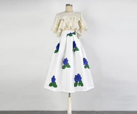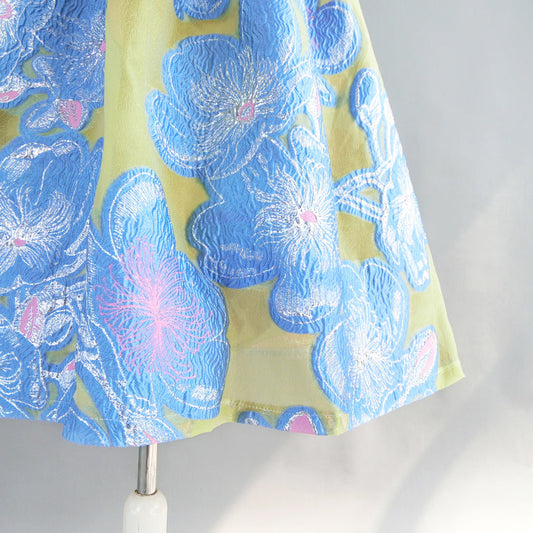Dainty Bright Blue Flower Crowd Hepburn Skirt