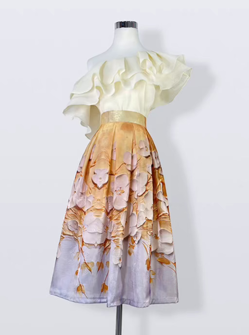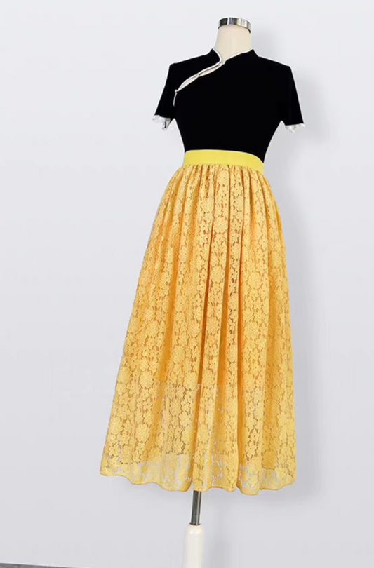 yellow organza lily of the valley positioning a-line skirt