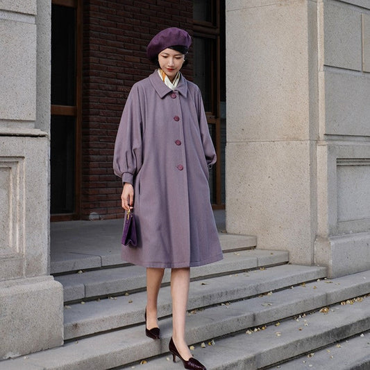 Gray Indigo Lady Classical Wool Coat