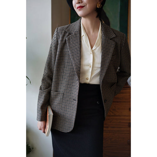 Houndstooth Plaid Classical Wool Jacket