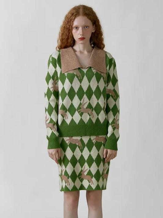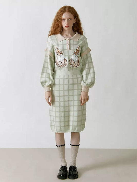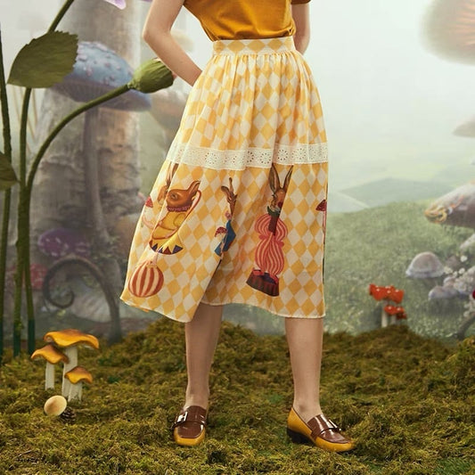 Plaid Fairytale Rabbit Spring Lace Embroidery Skirt