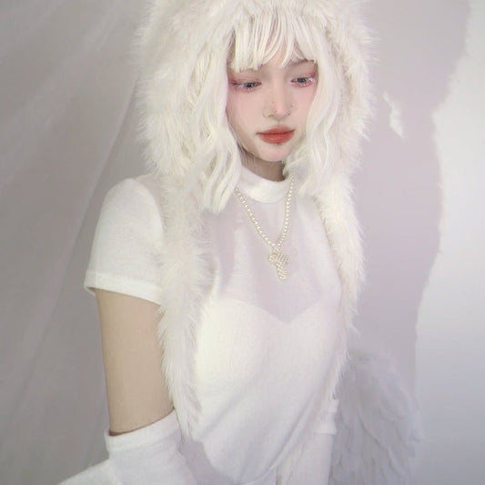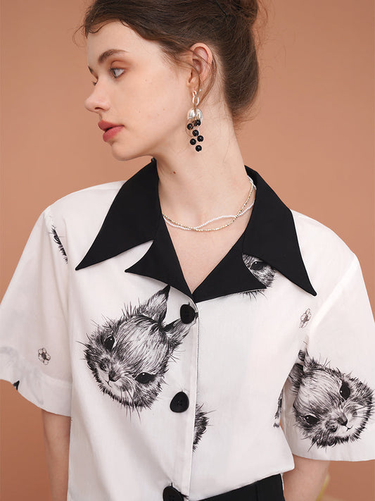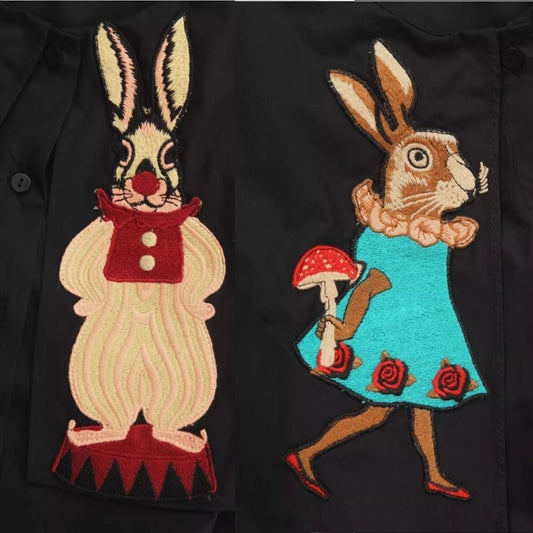 Fairy Tale Two Rabbits Black Cape Collar Long Sleeve Shirt