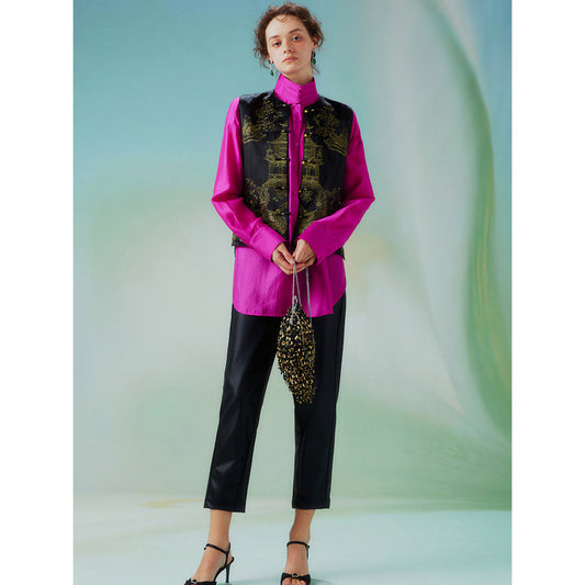 Passionate rose color stand collar blouse