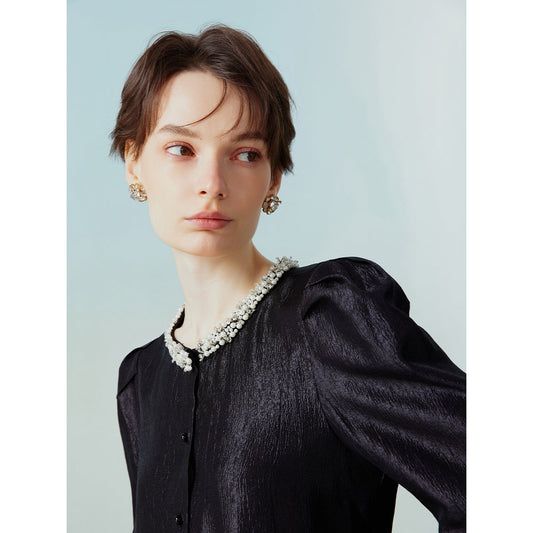 Jet black night sky decoration blouse