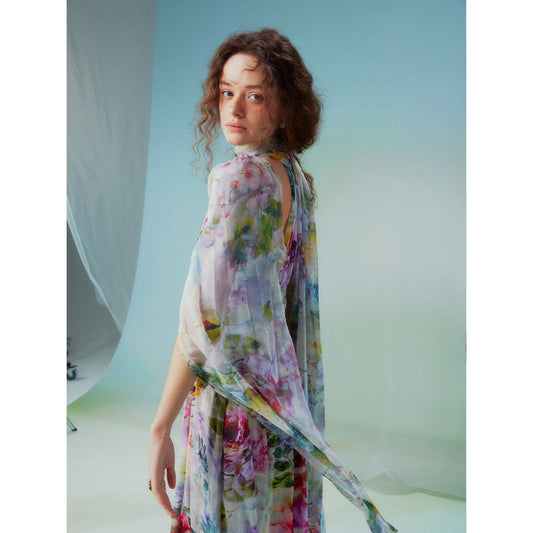Flower crowd watercolor long dress