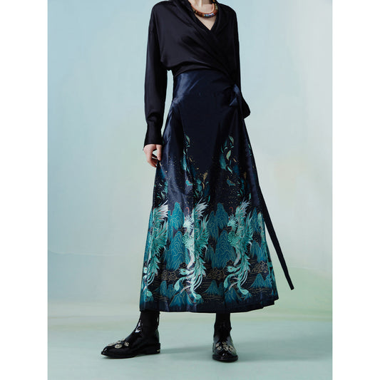 Mythical Bird and Sea of Clouds Long Pleated Skirt