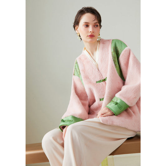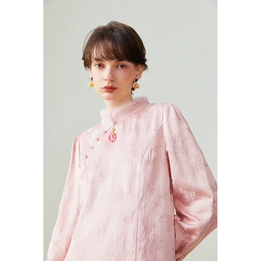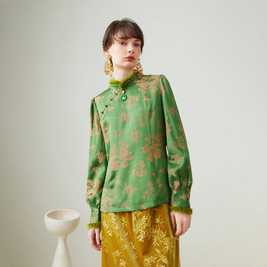 Cherry blossom jacquard china fur tops