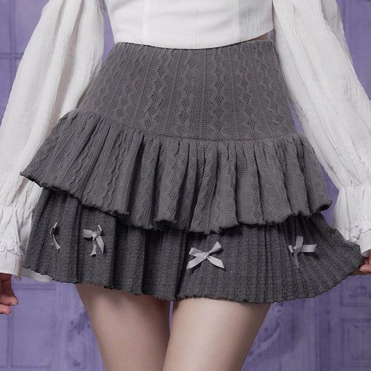 Gray Knitted Sweet and Cute High Waist Cake Skirt