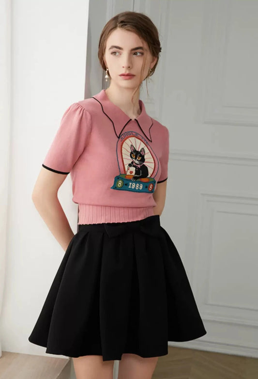 Two-piece Set Cat French Feather Decorated Hip Skirt