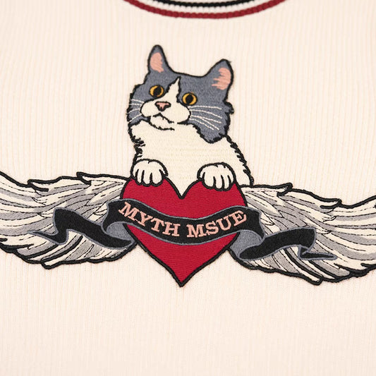 【日本国内発送、1週間以内にお届け】hand-painted cat short-sleeved T-shirt