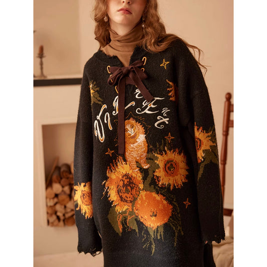 Wallpaper Printed Long Sleeve Retro Cat Shirt