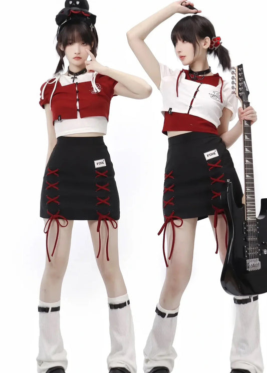 Band Girl Short Top & Braided Short Skirt