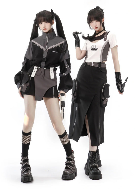 Futuristic game main character girl jacket top and bottom