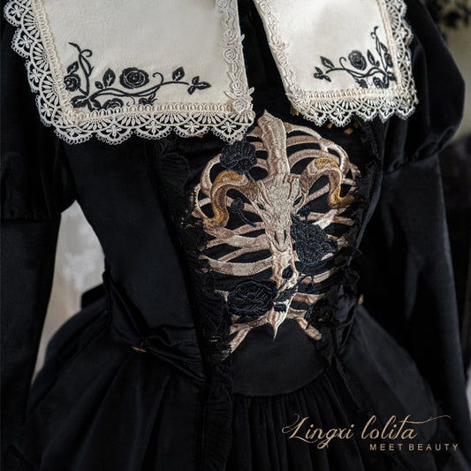 Nightmare lady gothic ribbon blouse & ruffled skirt