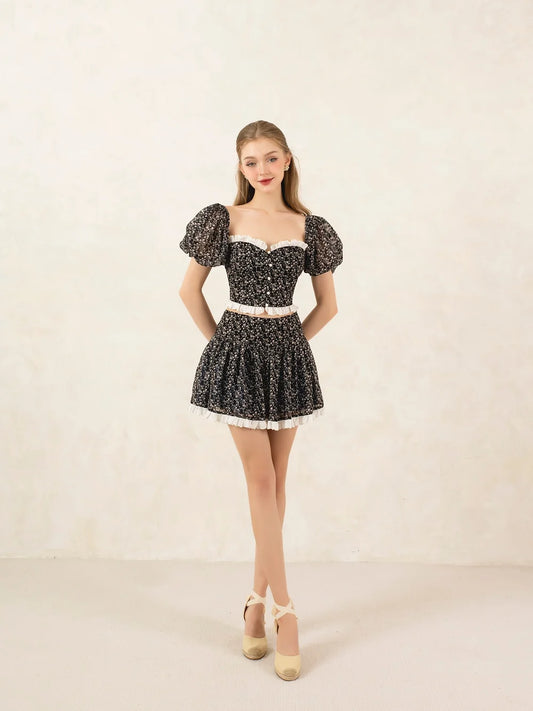 Two-piece Set Cat French Feather Decorated Hip Skirt